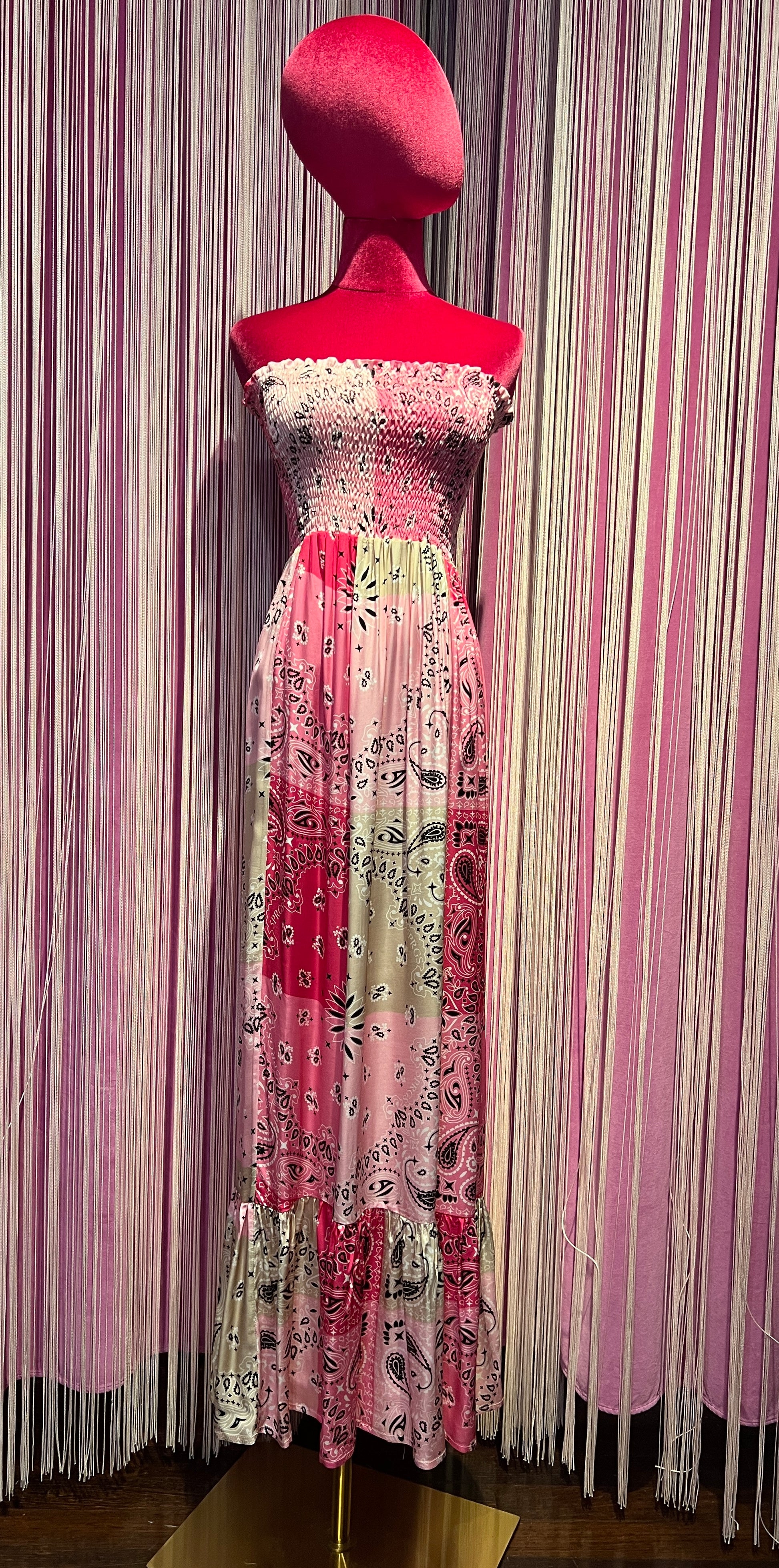 5 Progress abito lungo fantasia bandana rosa con balza