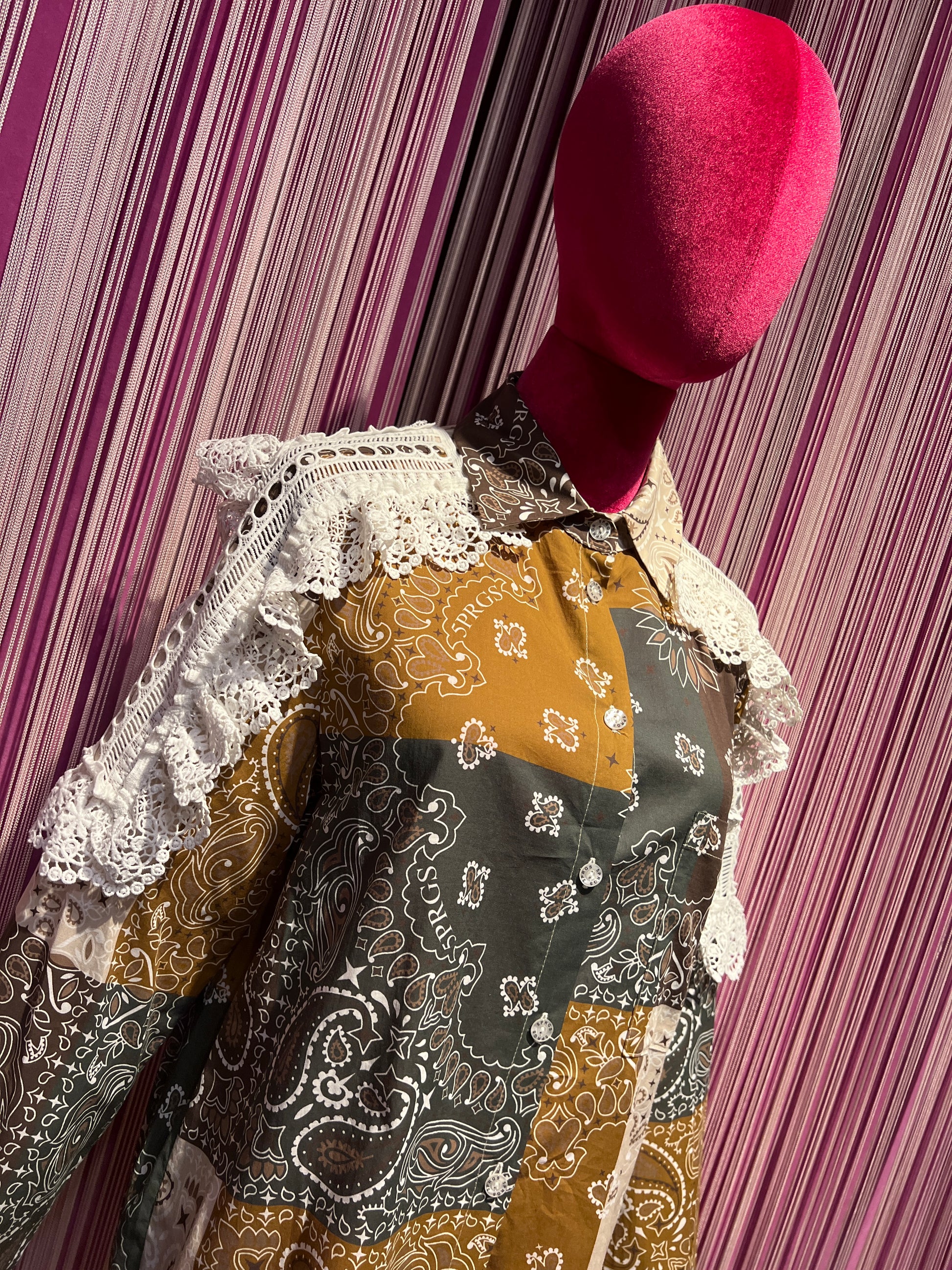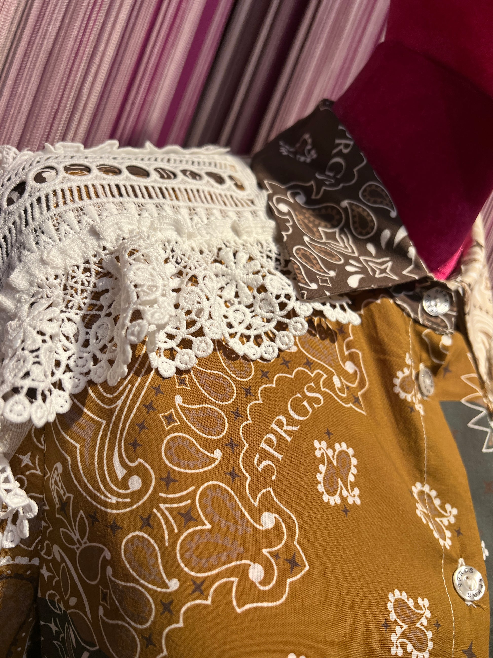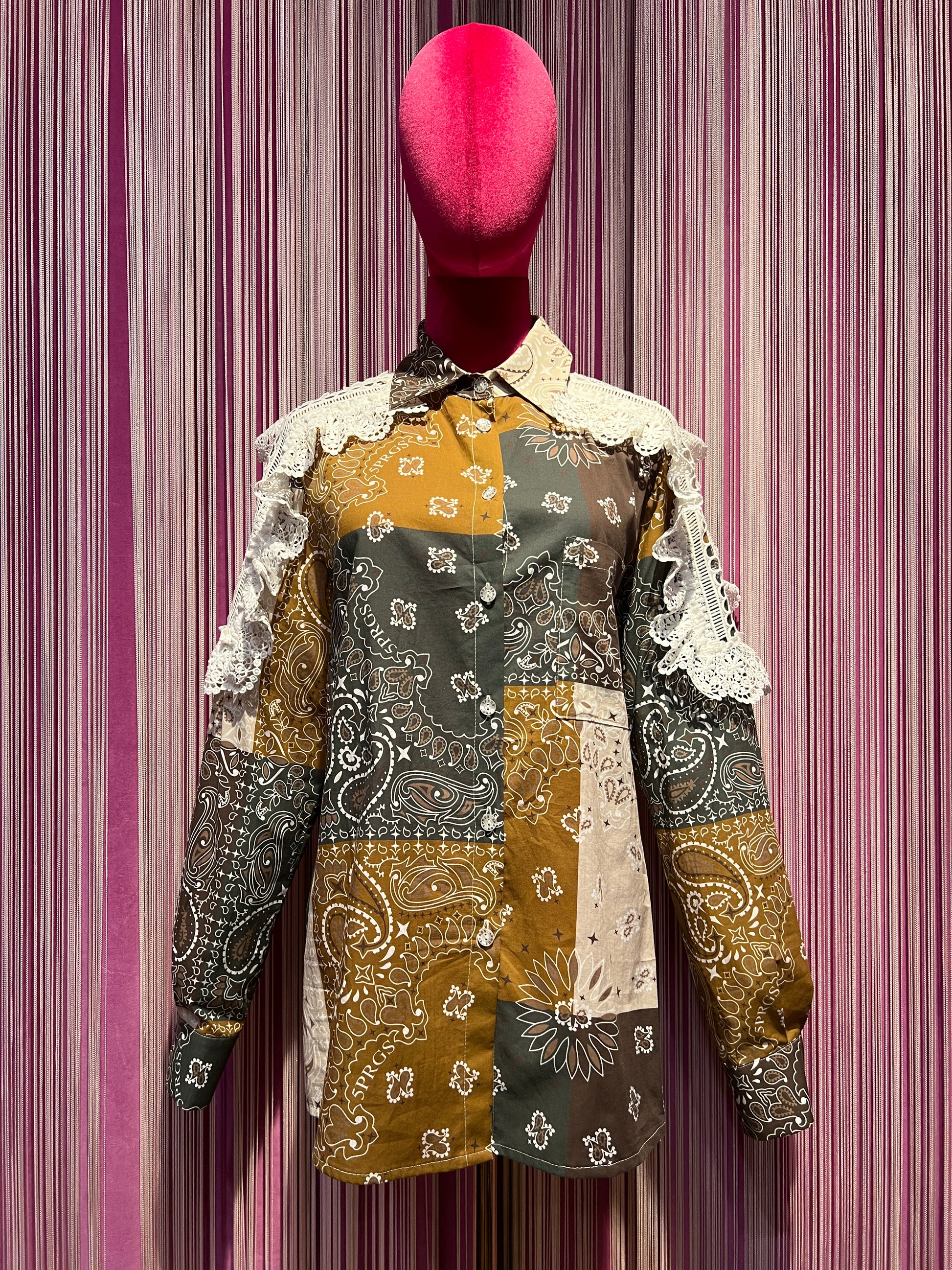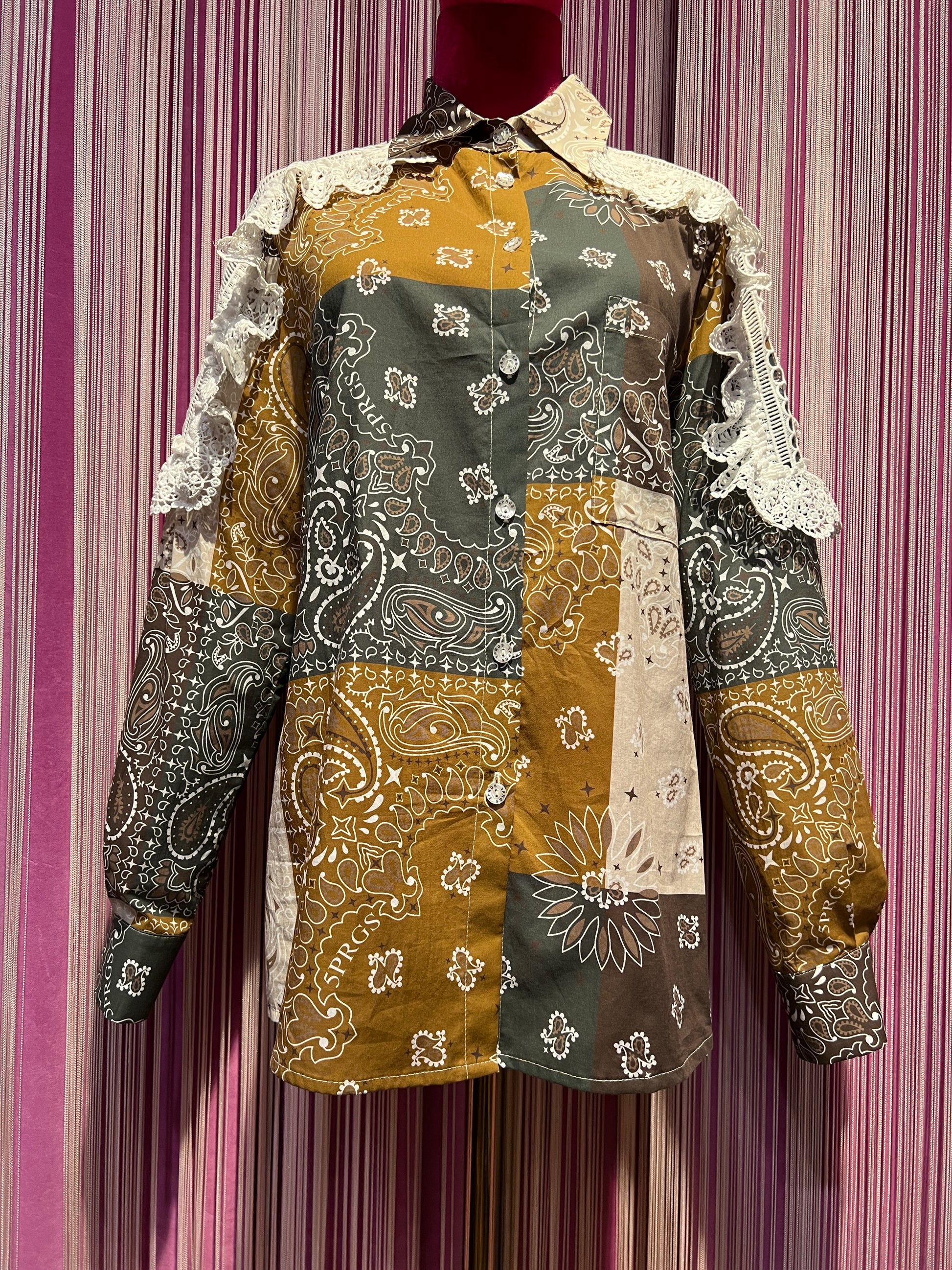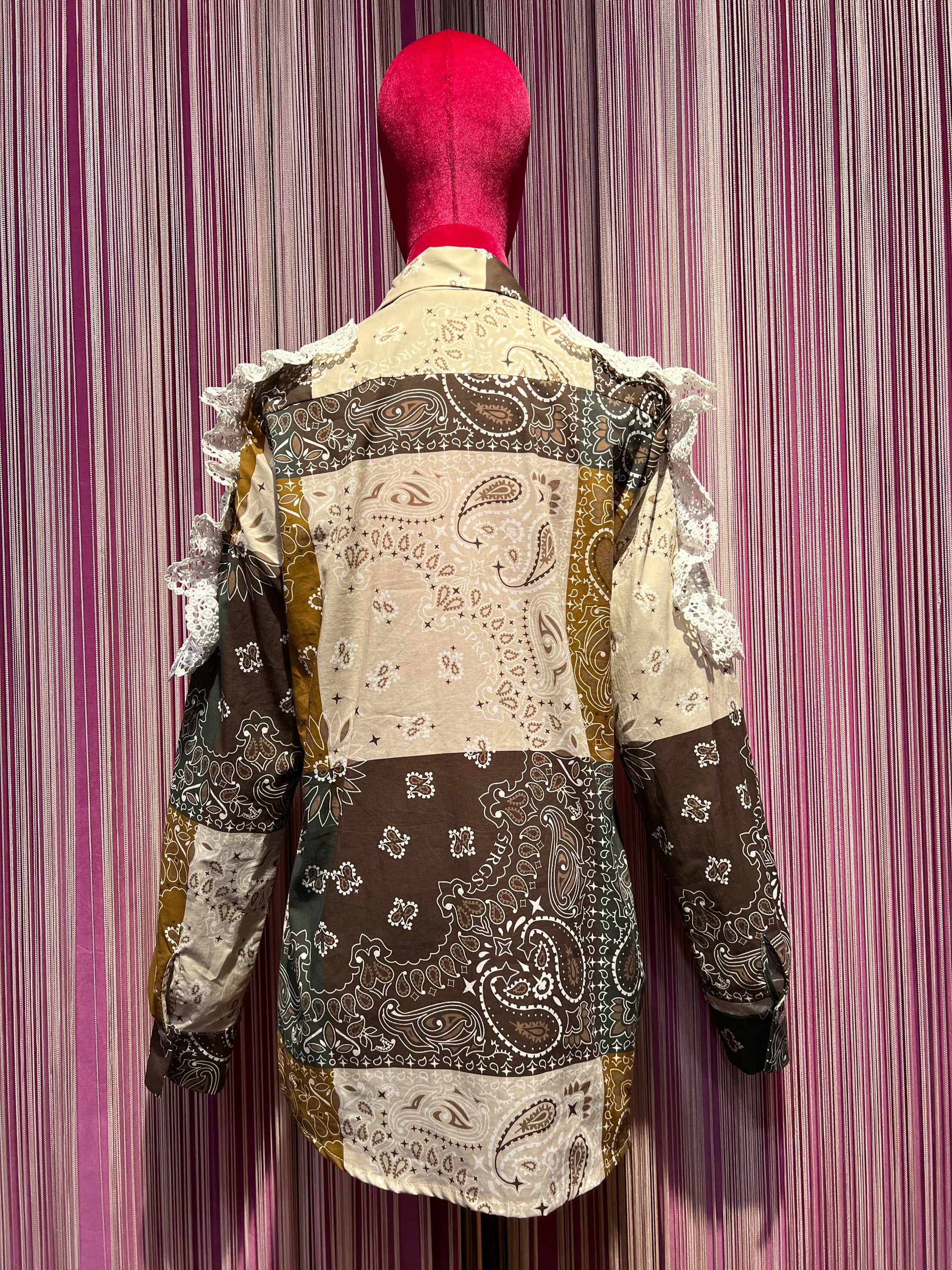 5 Progress camicia cotone fantasia bandana con applicazioni pizzo crochet