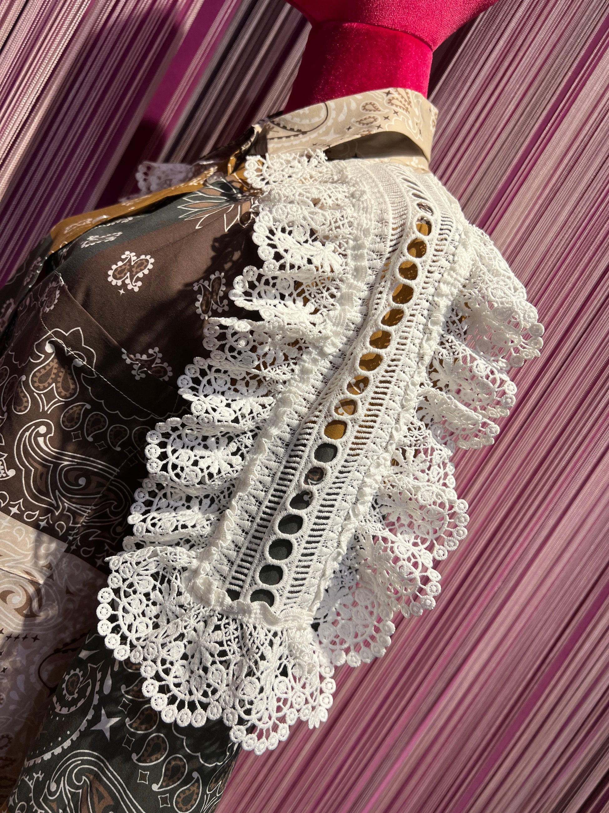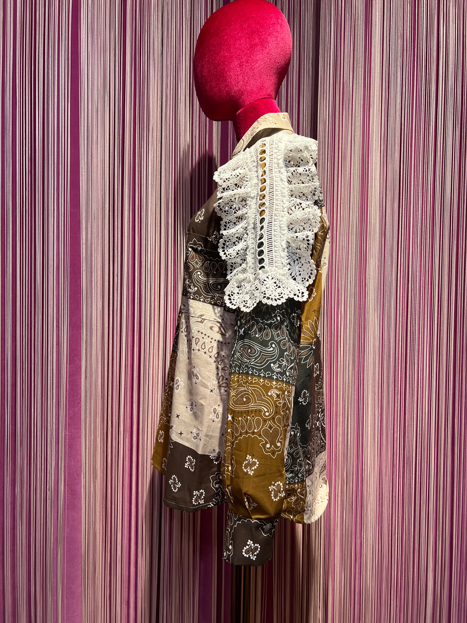 Camicia cotone fantasia bandana con pizzo crochet