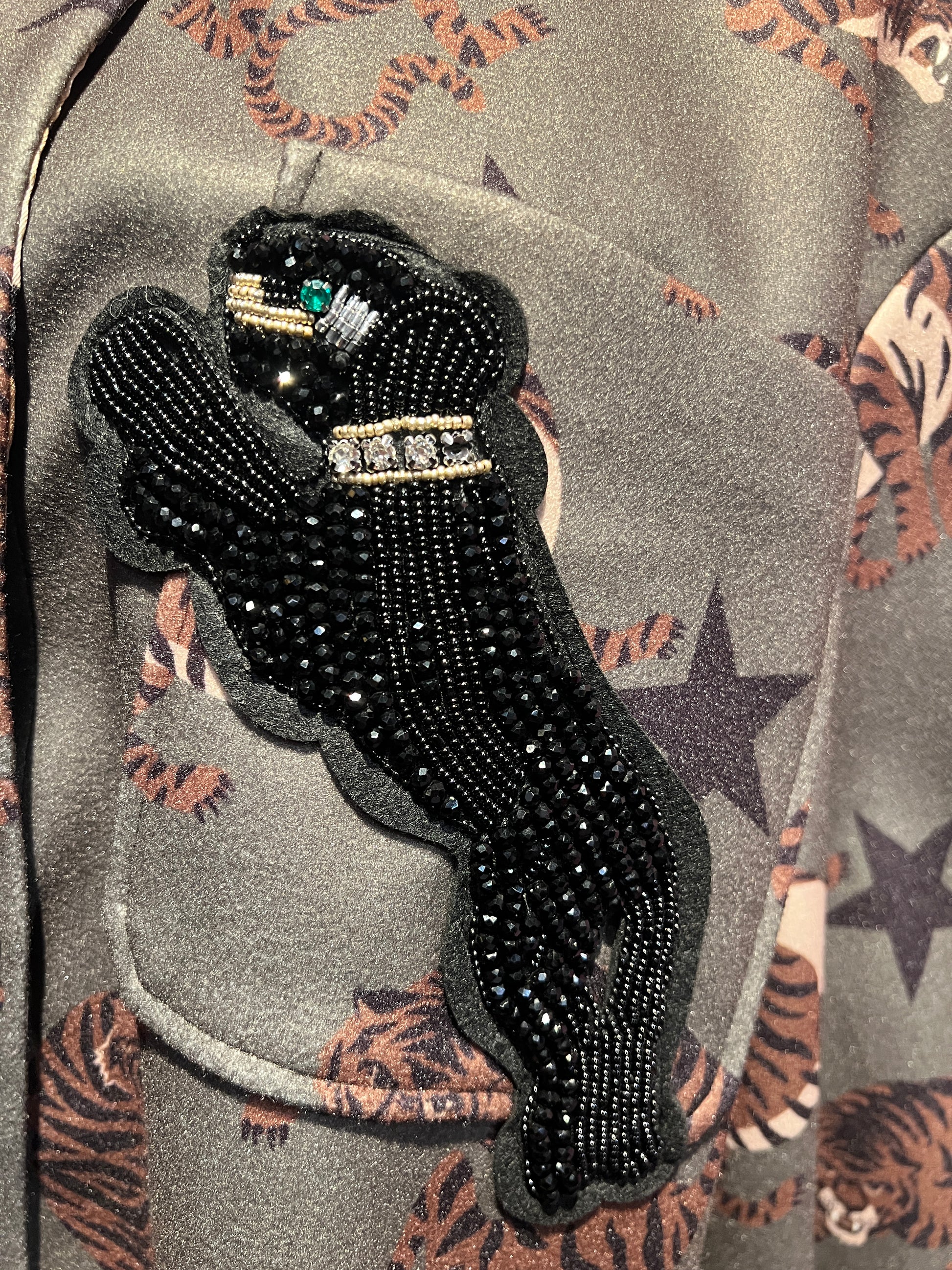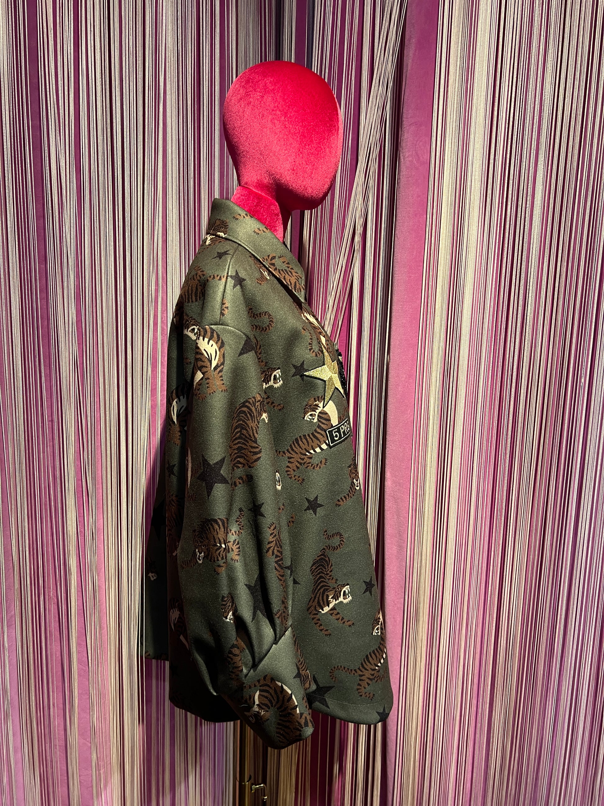 5 Progress cappotto fantasia tigri con pantera cristalli e patch