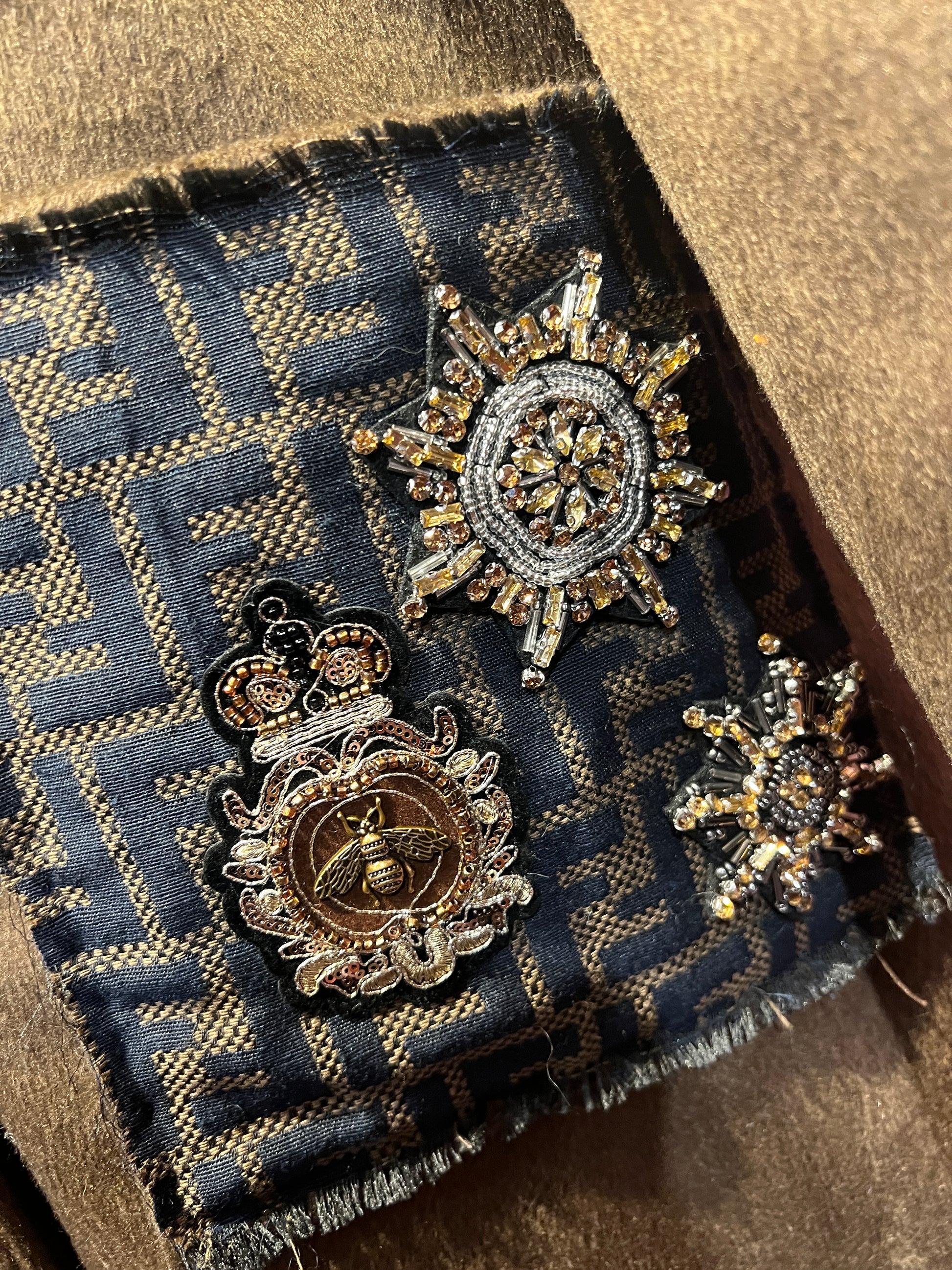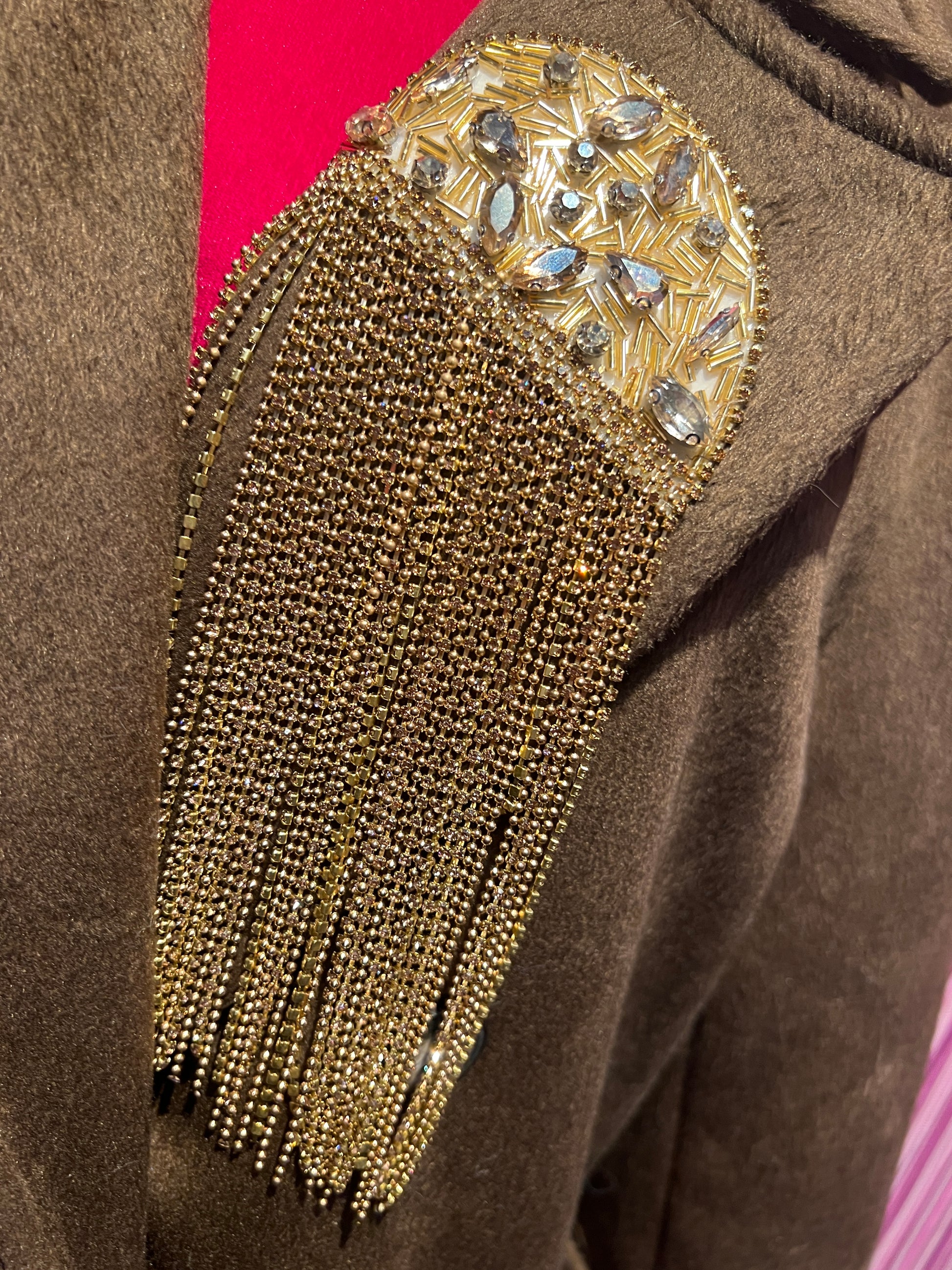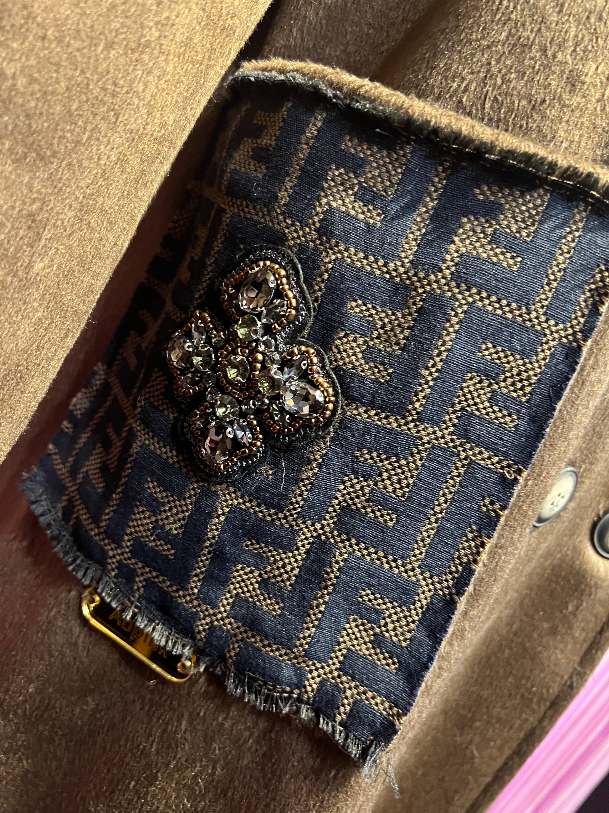 ABpink 🩷cappotto doppiopetto cioccolato patch perline e cristalli tessuto FF
