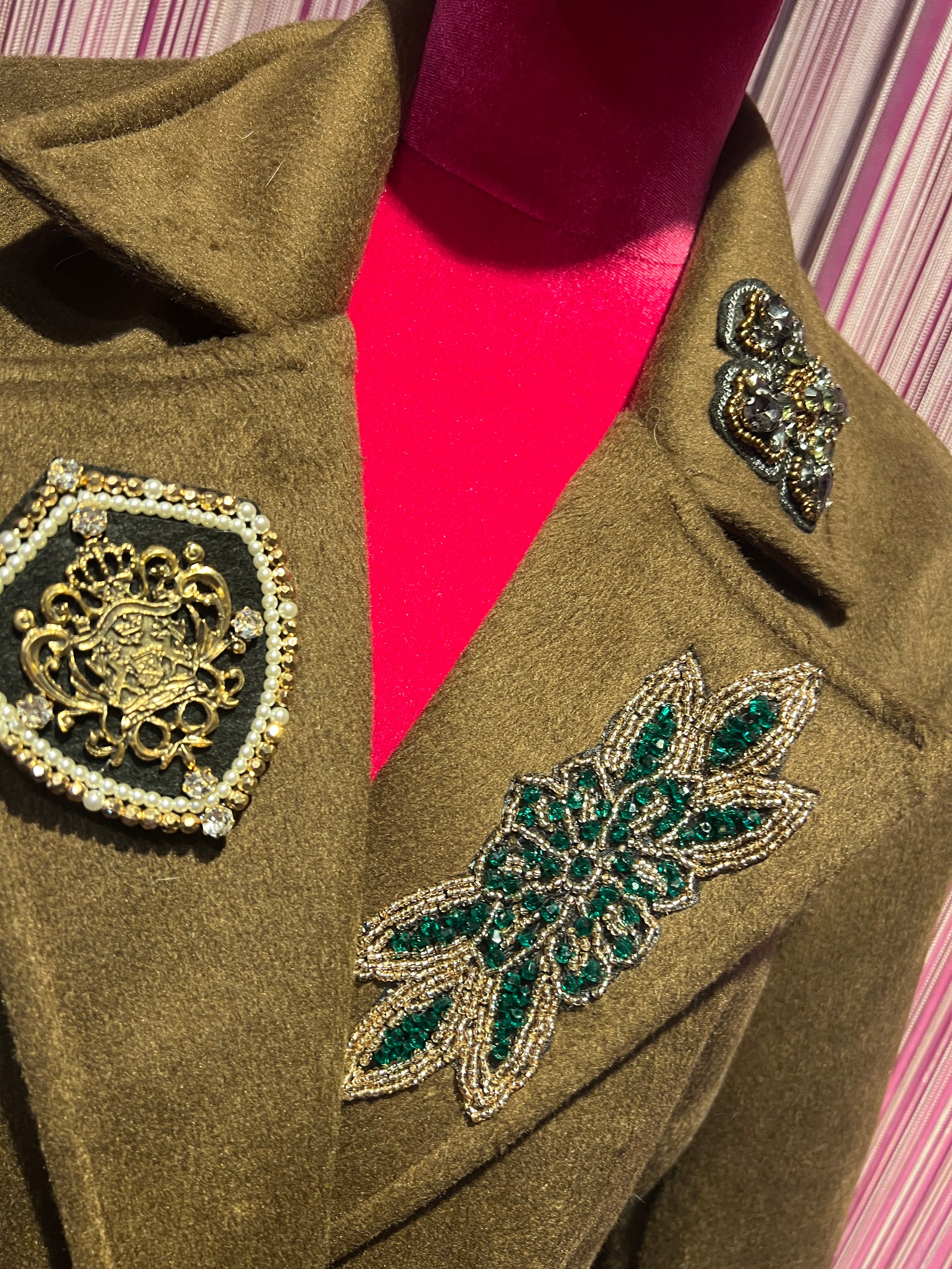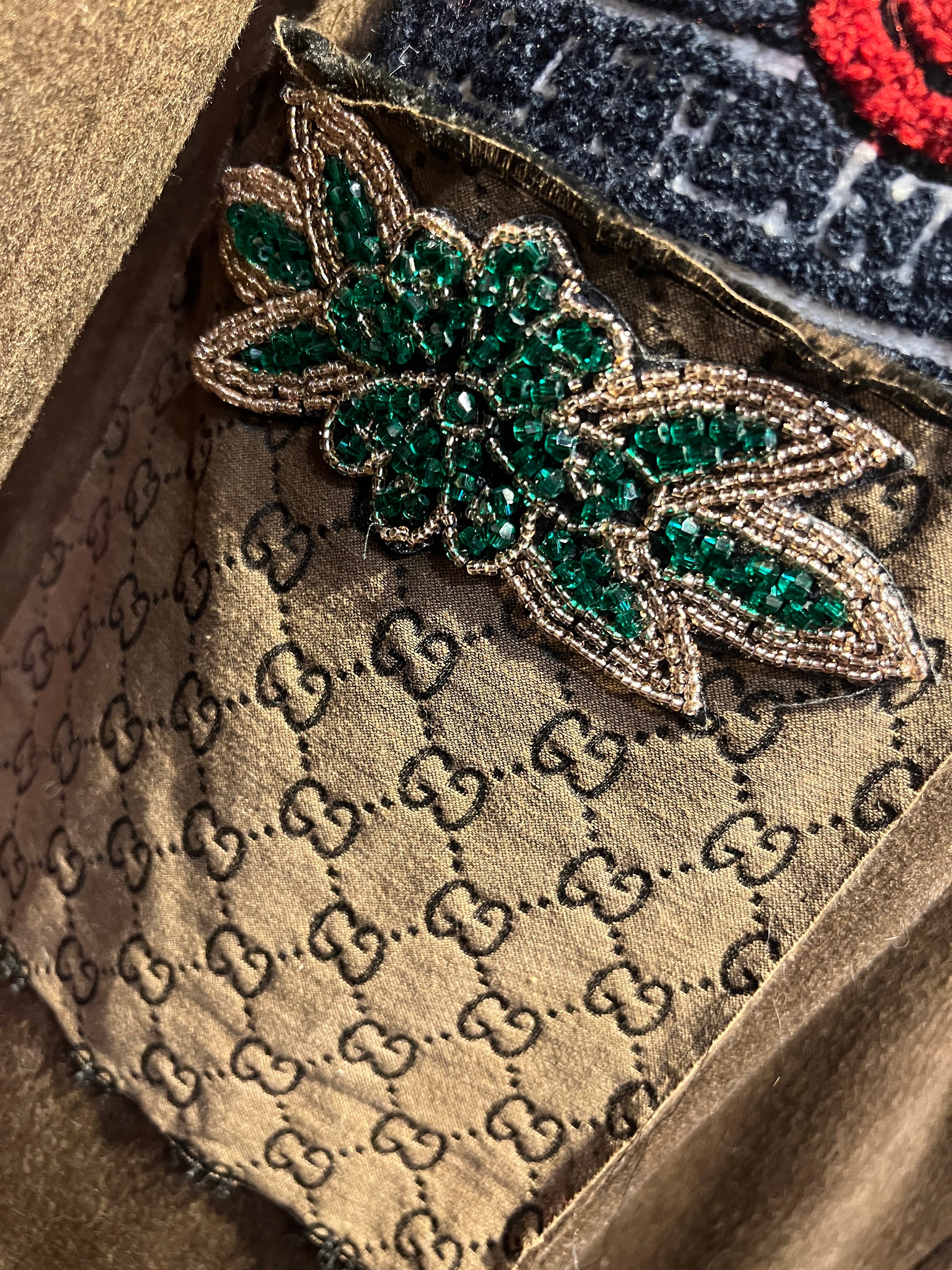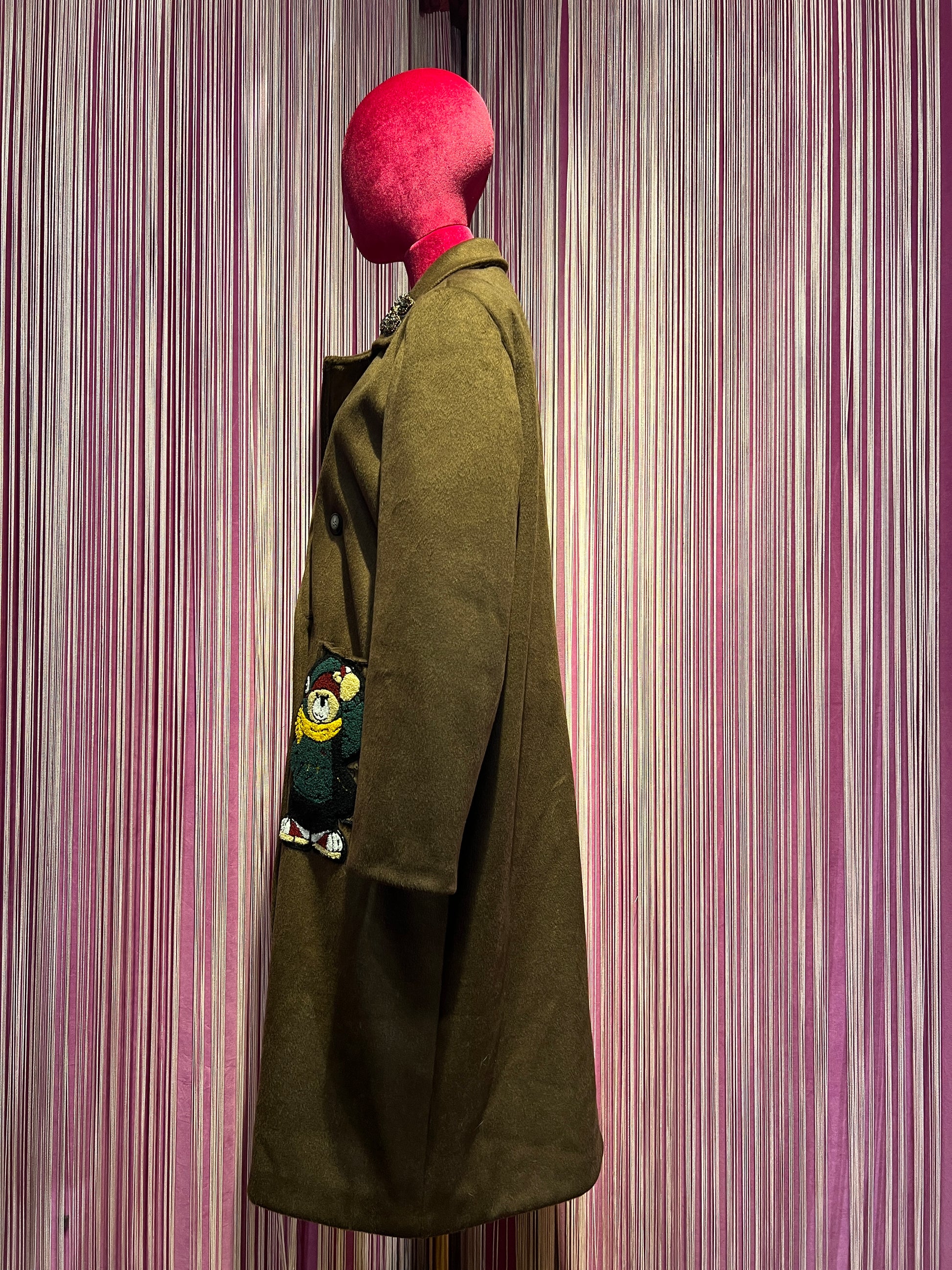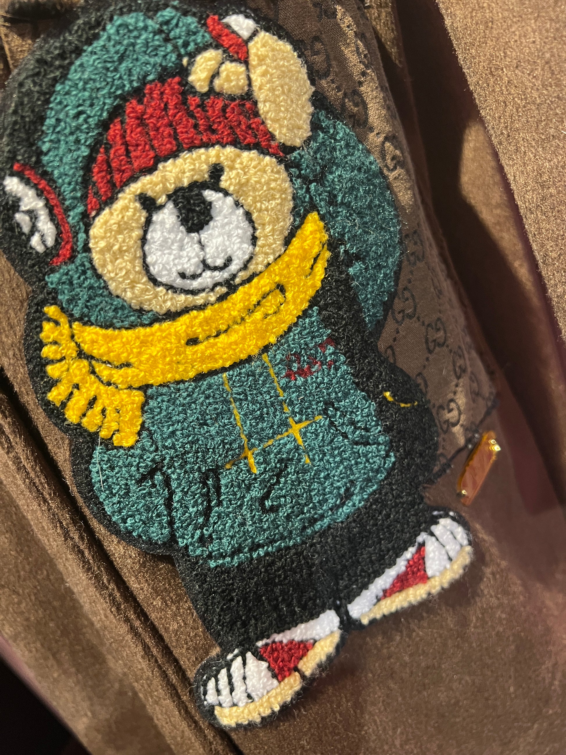 ABpink 🩷cappotto doppiopetto cioccolato patch teddy , perline e tessuto GG