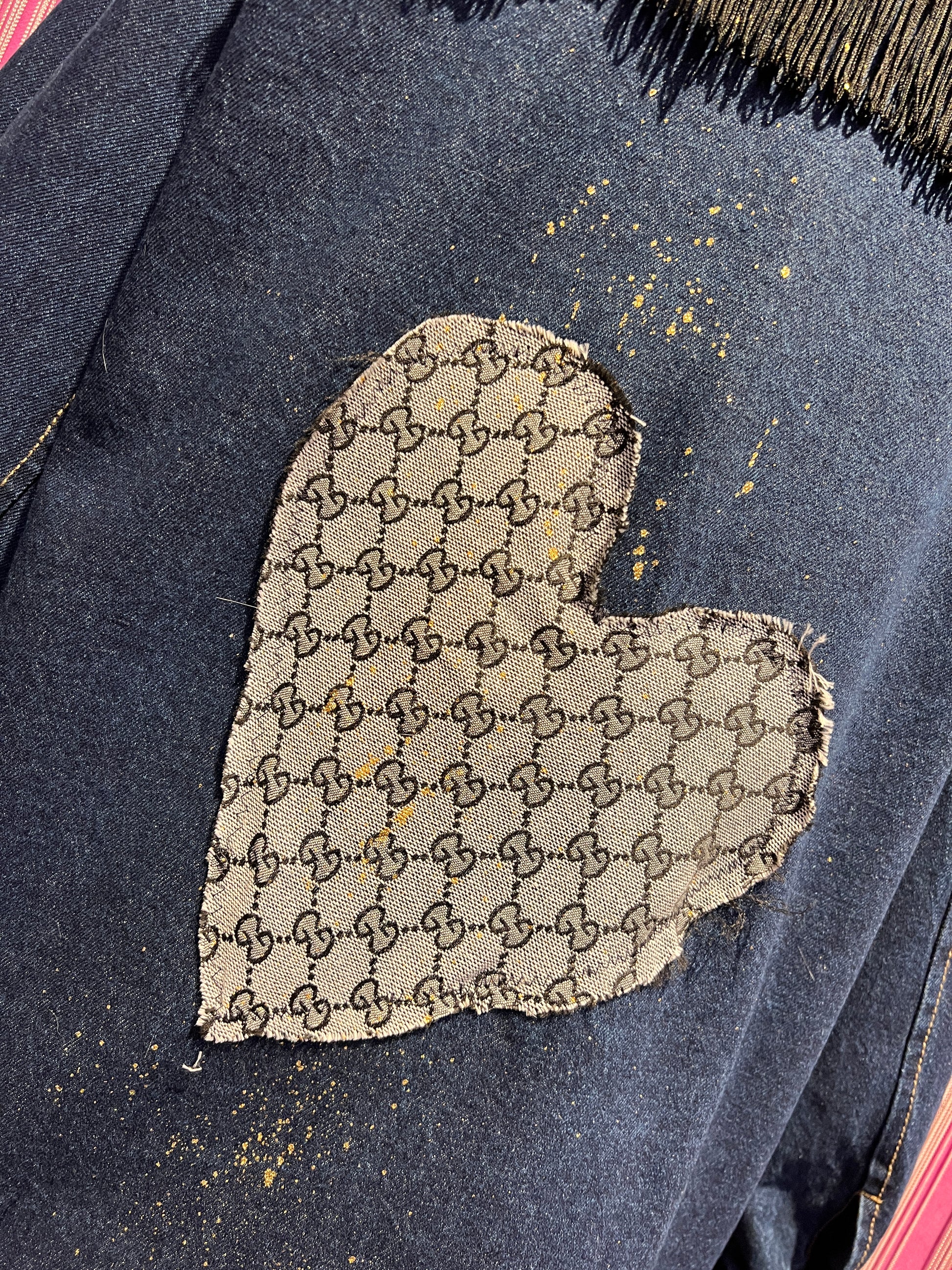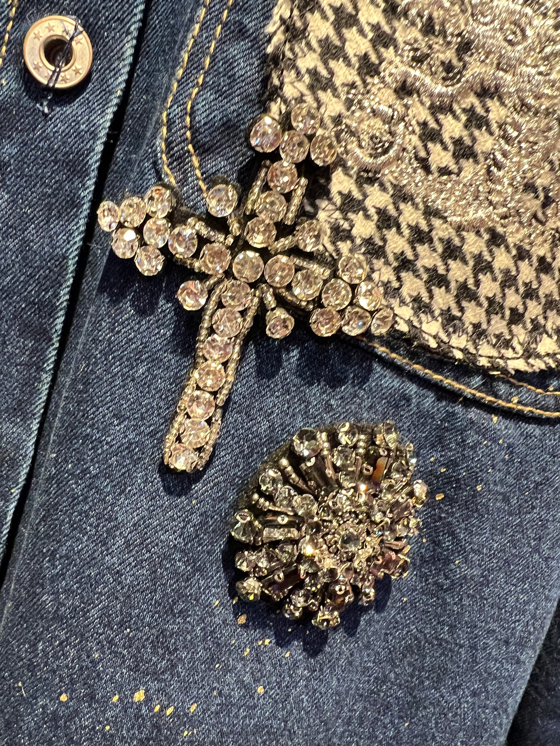 ABpink🩷 giacca camicia con stoffa vintage e tessuto pied dí poule sulle tasche con patch