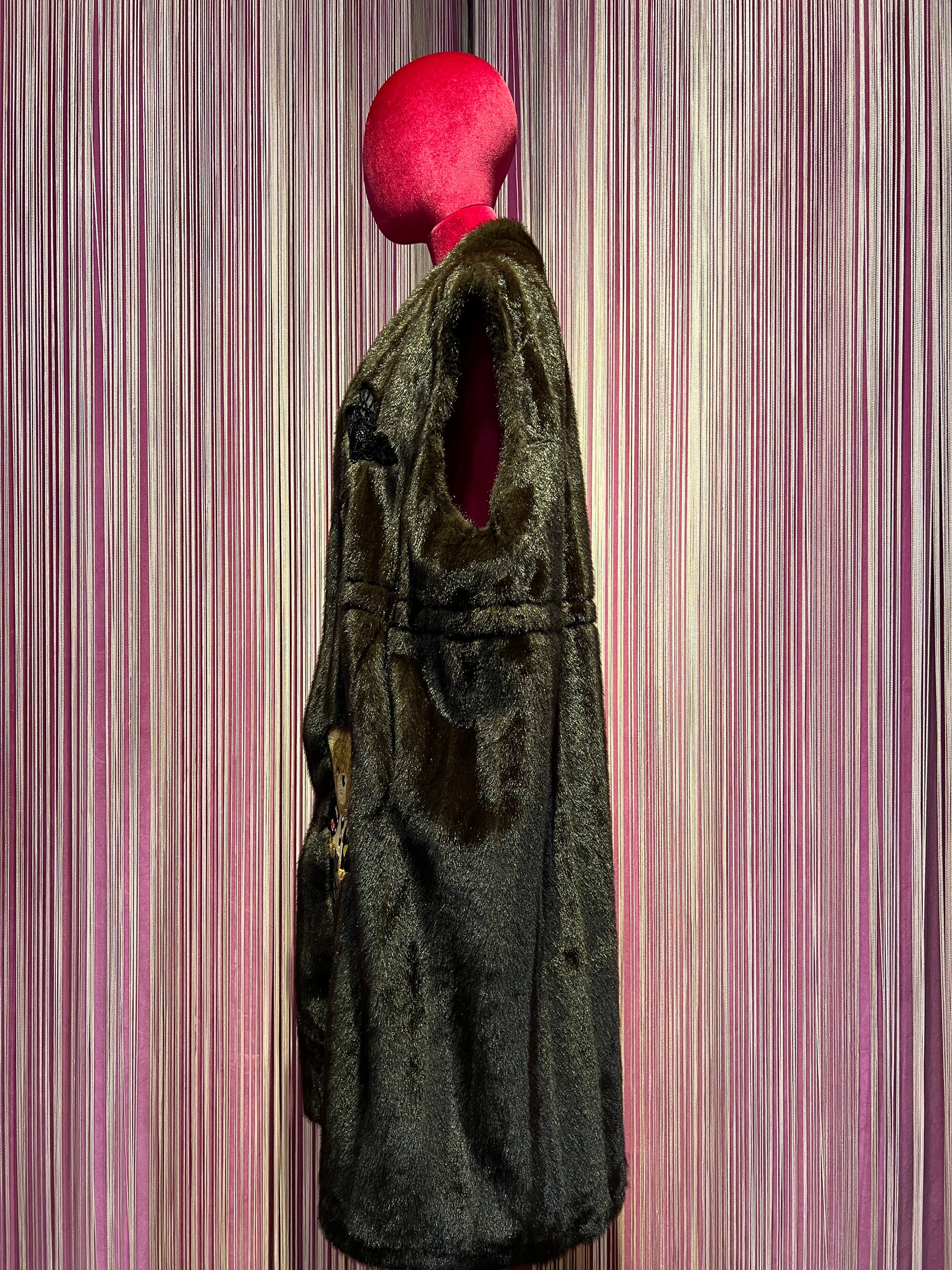 ABpink 🩷 gilet eco visone “good vibes” con patch teddy e patch fiore e stella in paillettes
