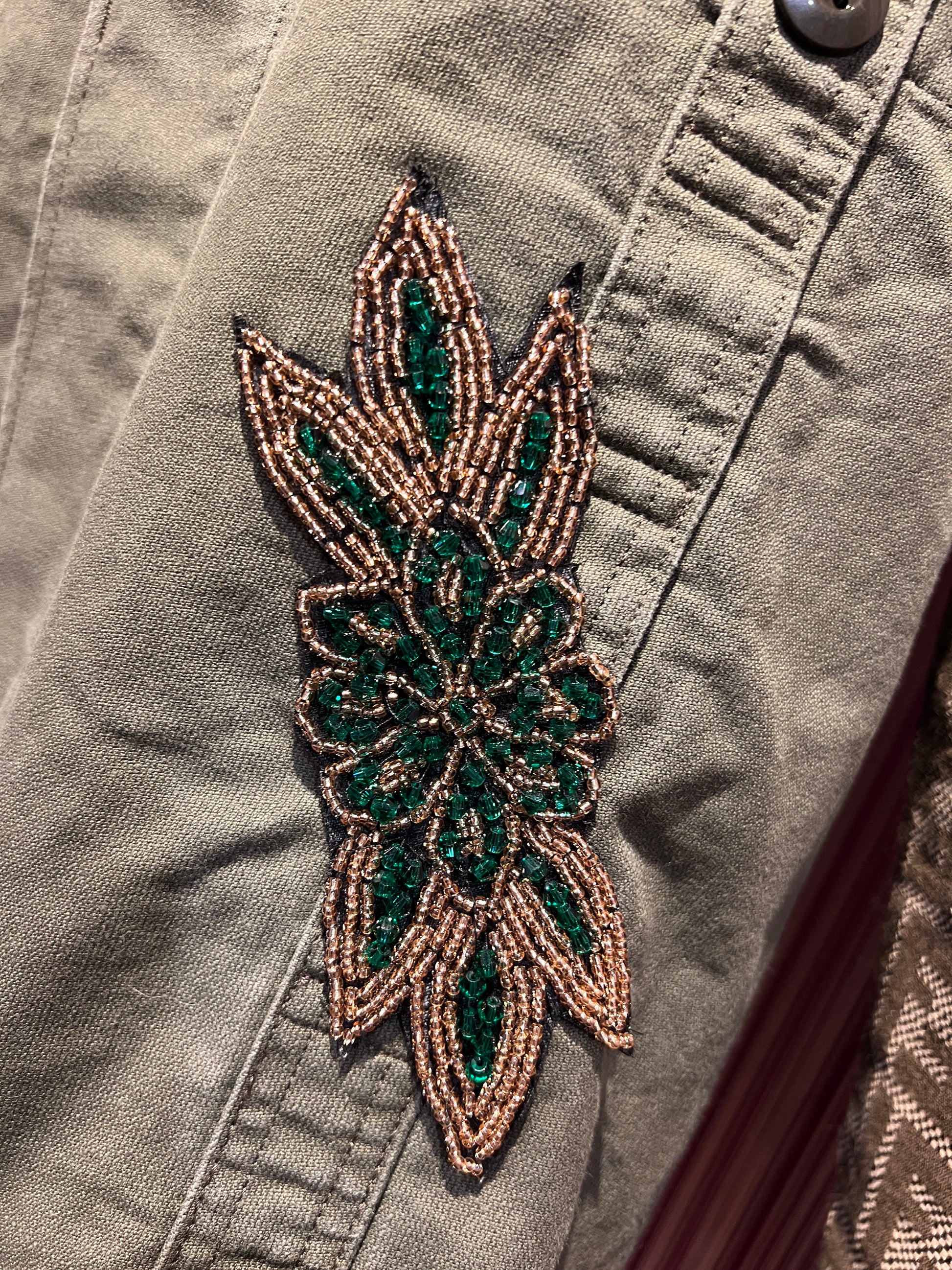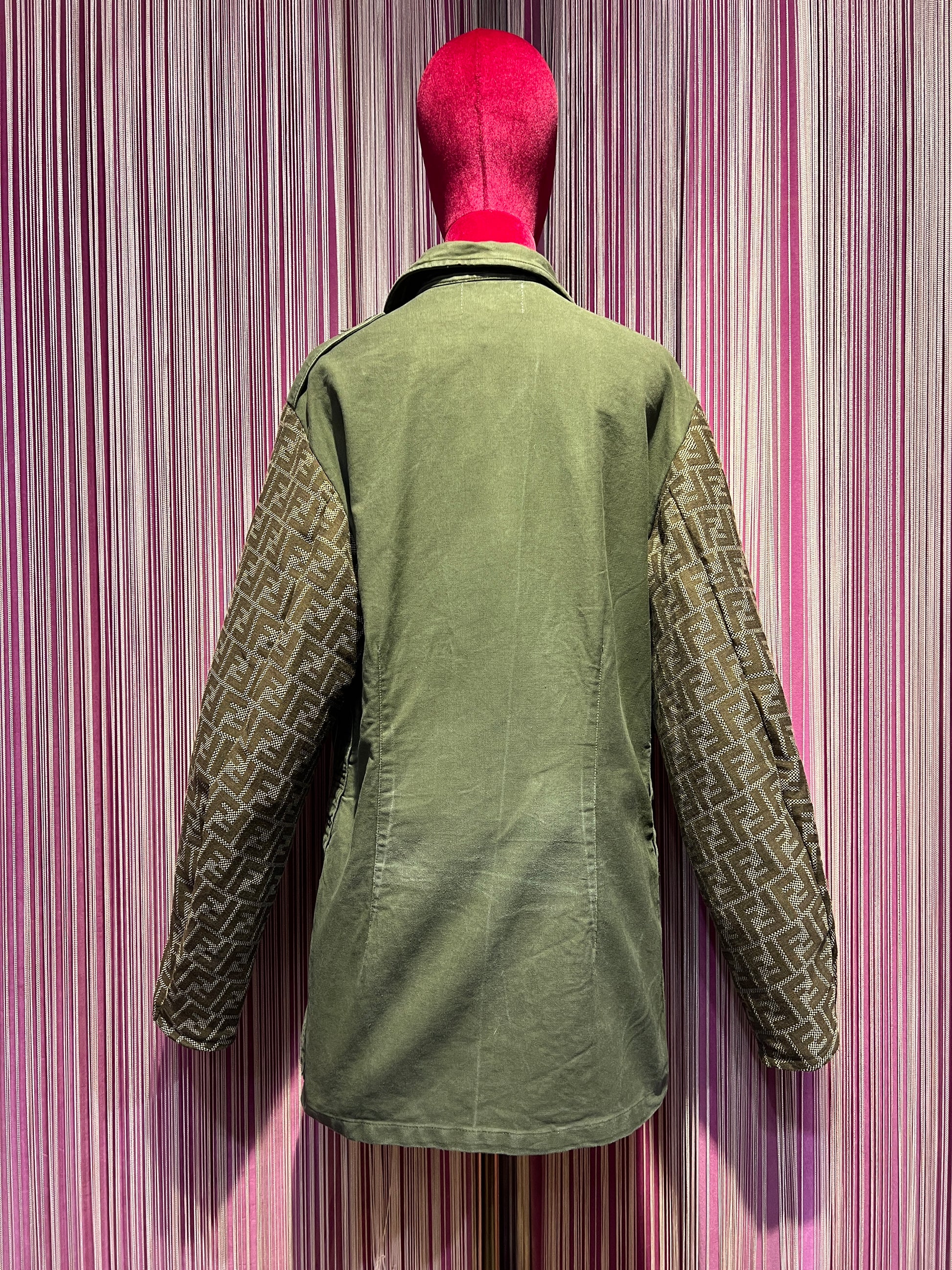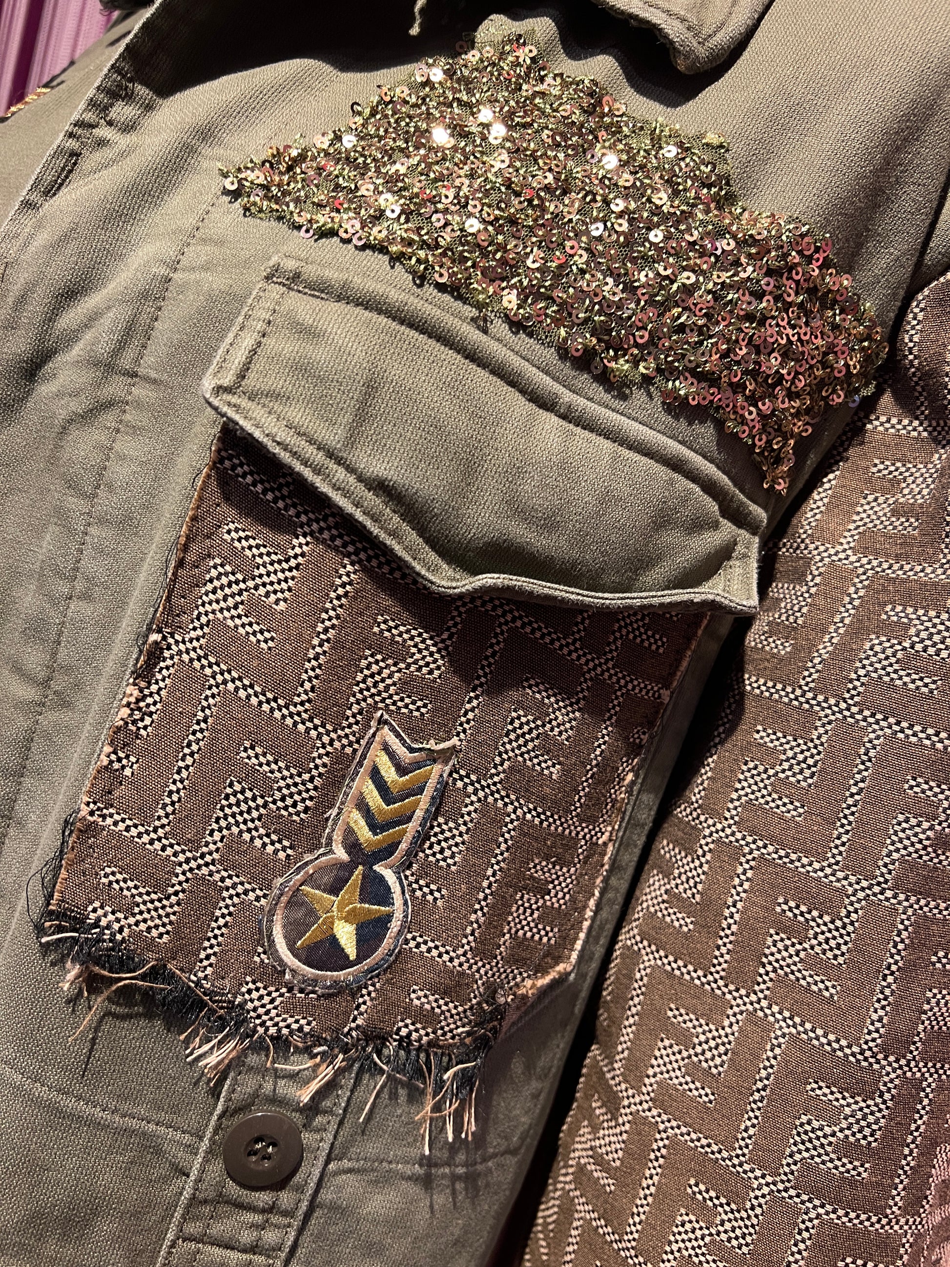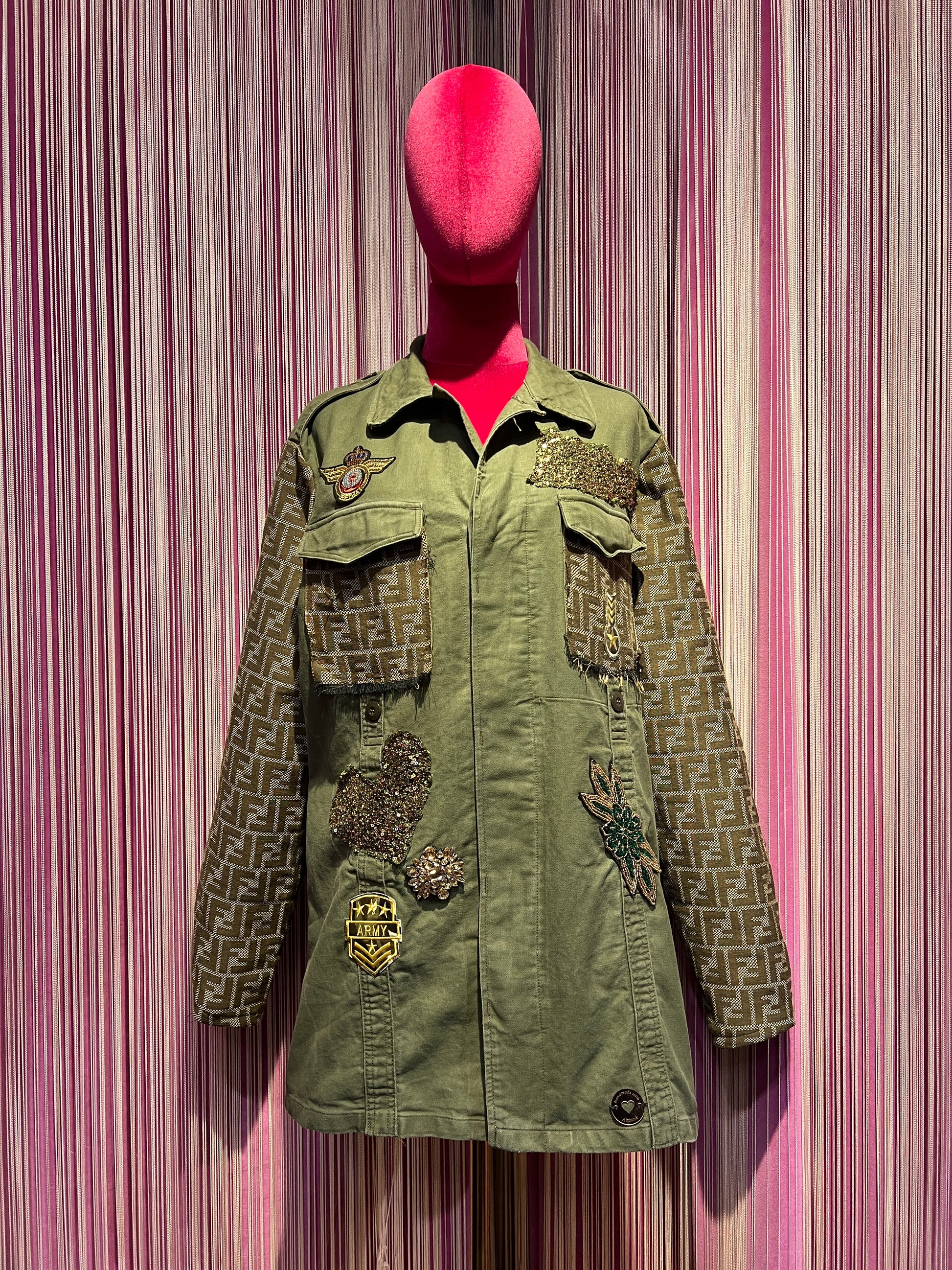 ABpink 🩷la verdina , giacca militare con maniche logate pacht cuore paillettes oro e mostrine