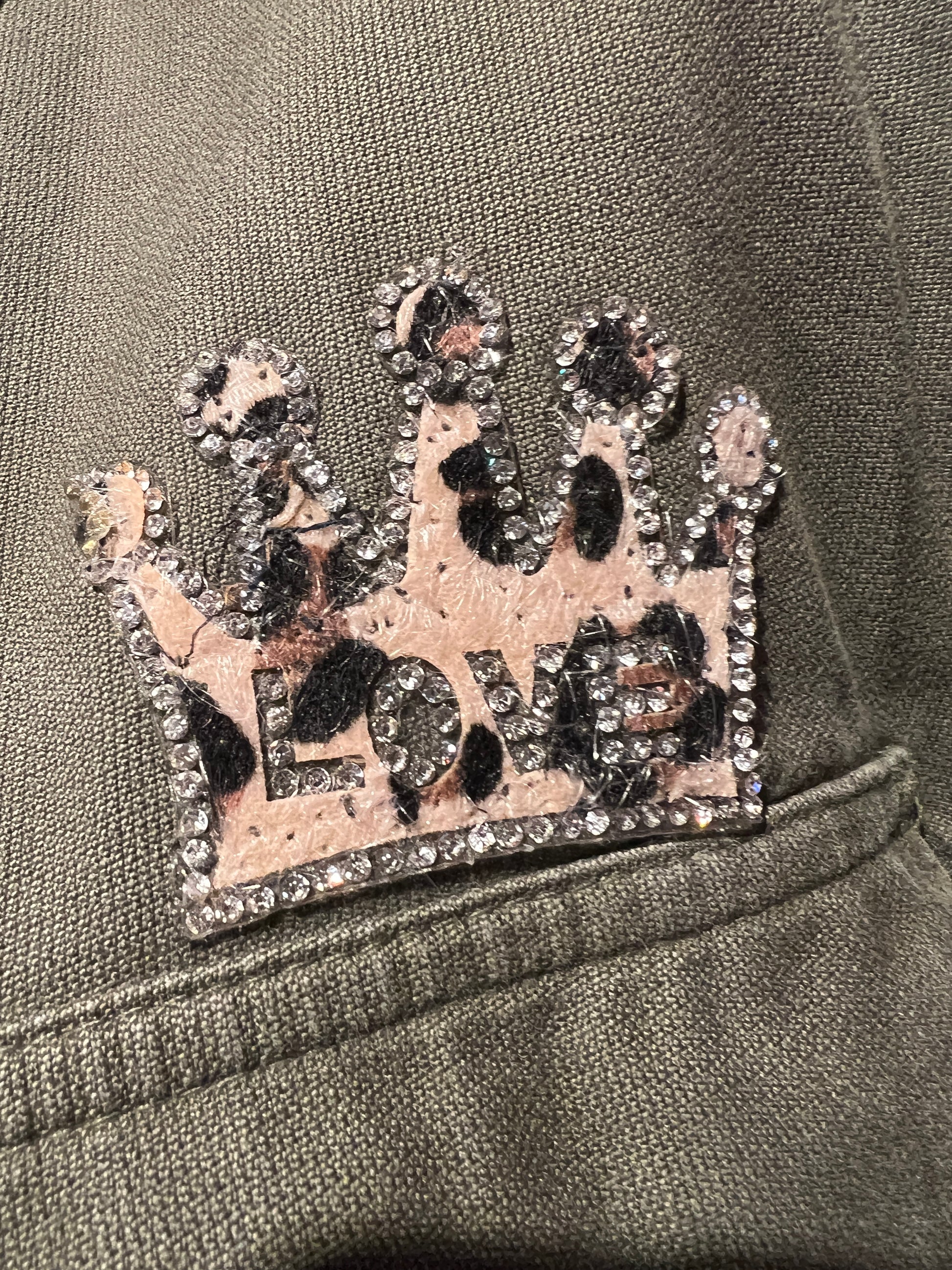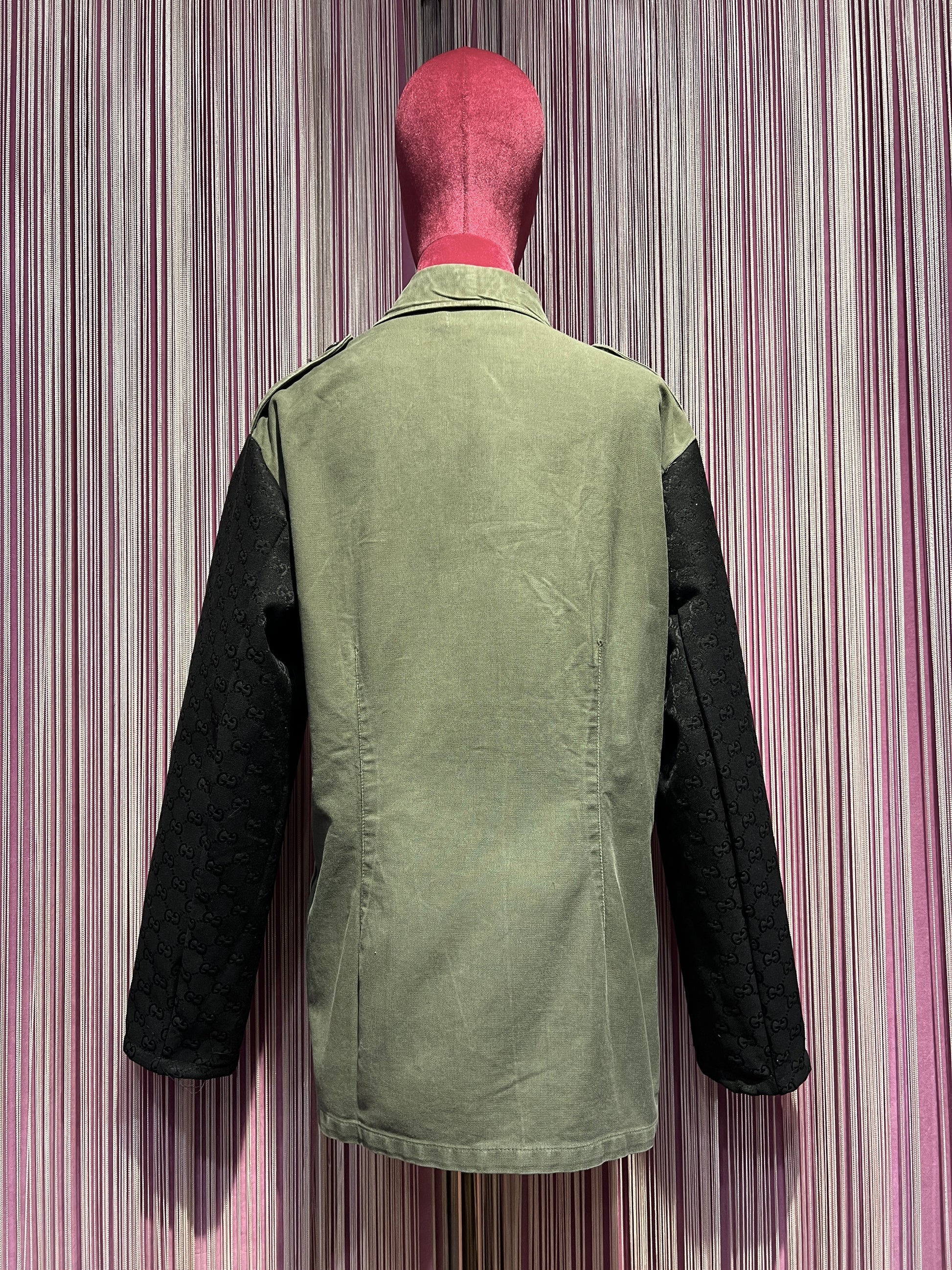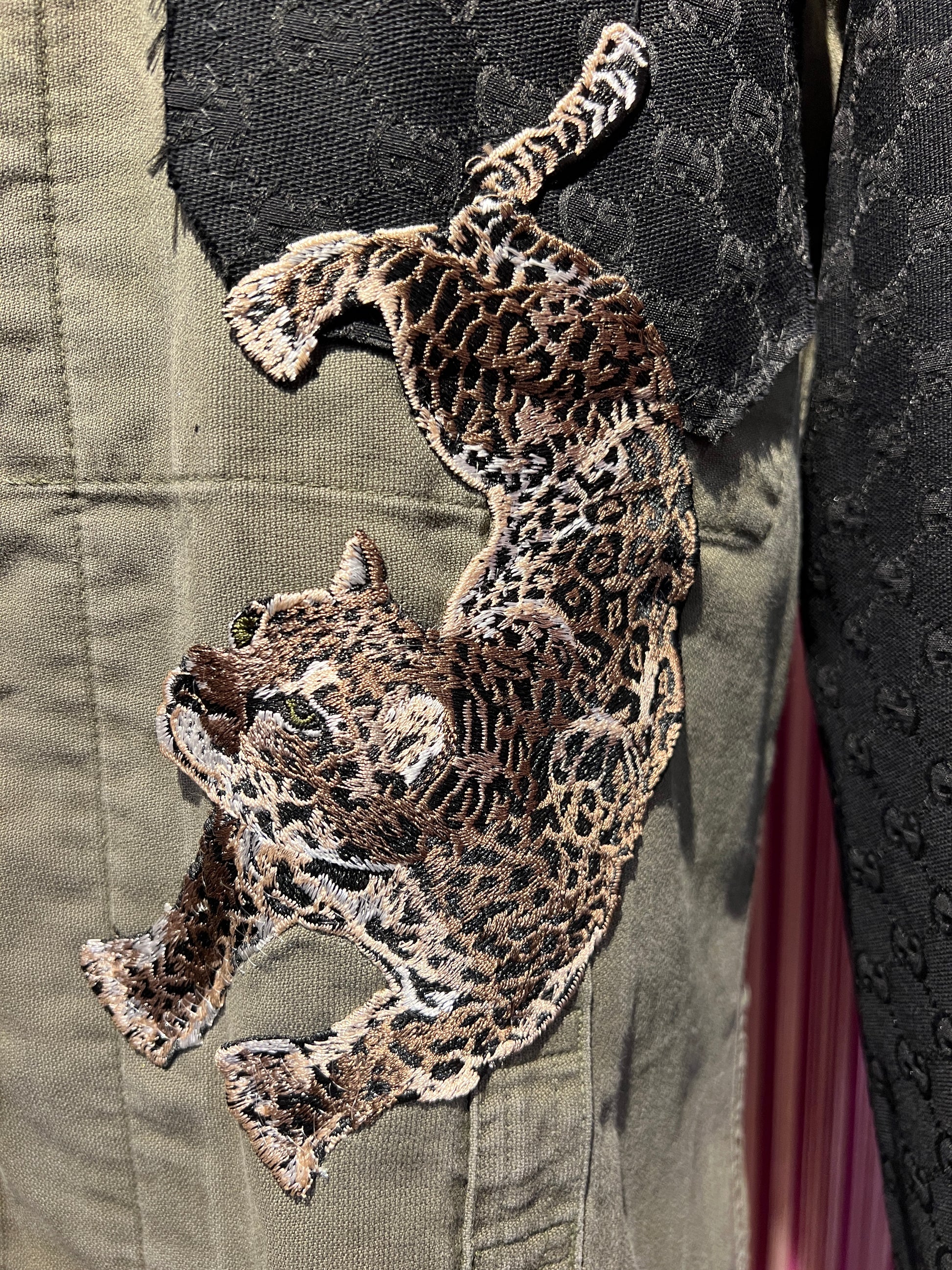 ABpink 🩷 la verdina , giacca militare con patch tigre , cuore sacro paillettes e tessuto nero GG