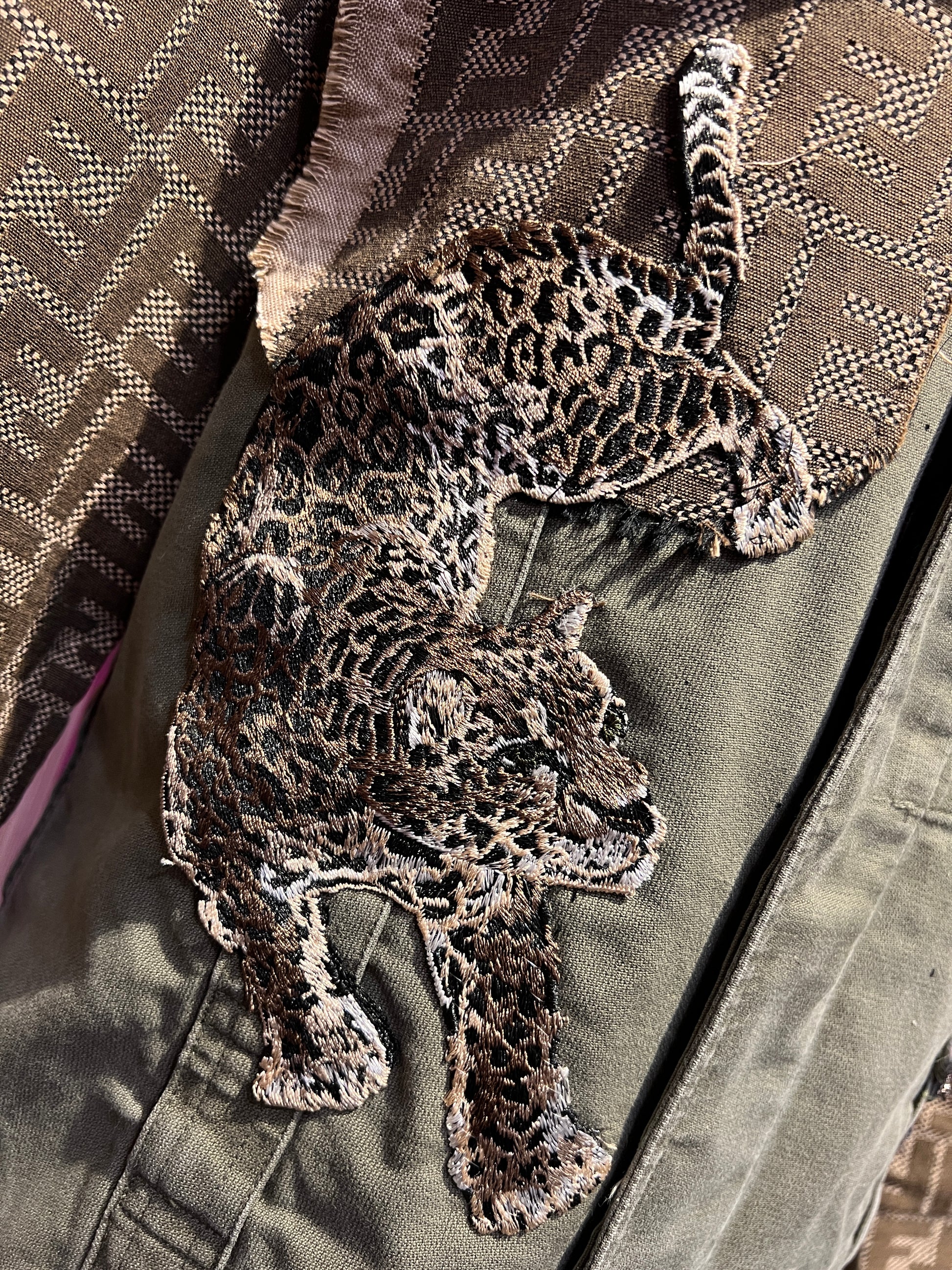 ABpink 🩷 la verdina , giacca militare con patch tigre, fiori cristalli e tessuto FF