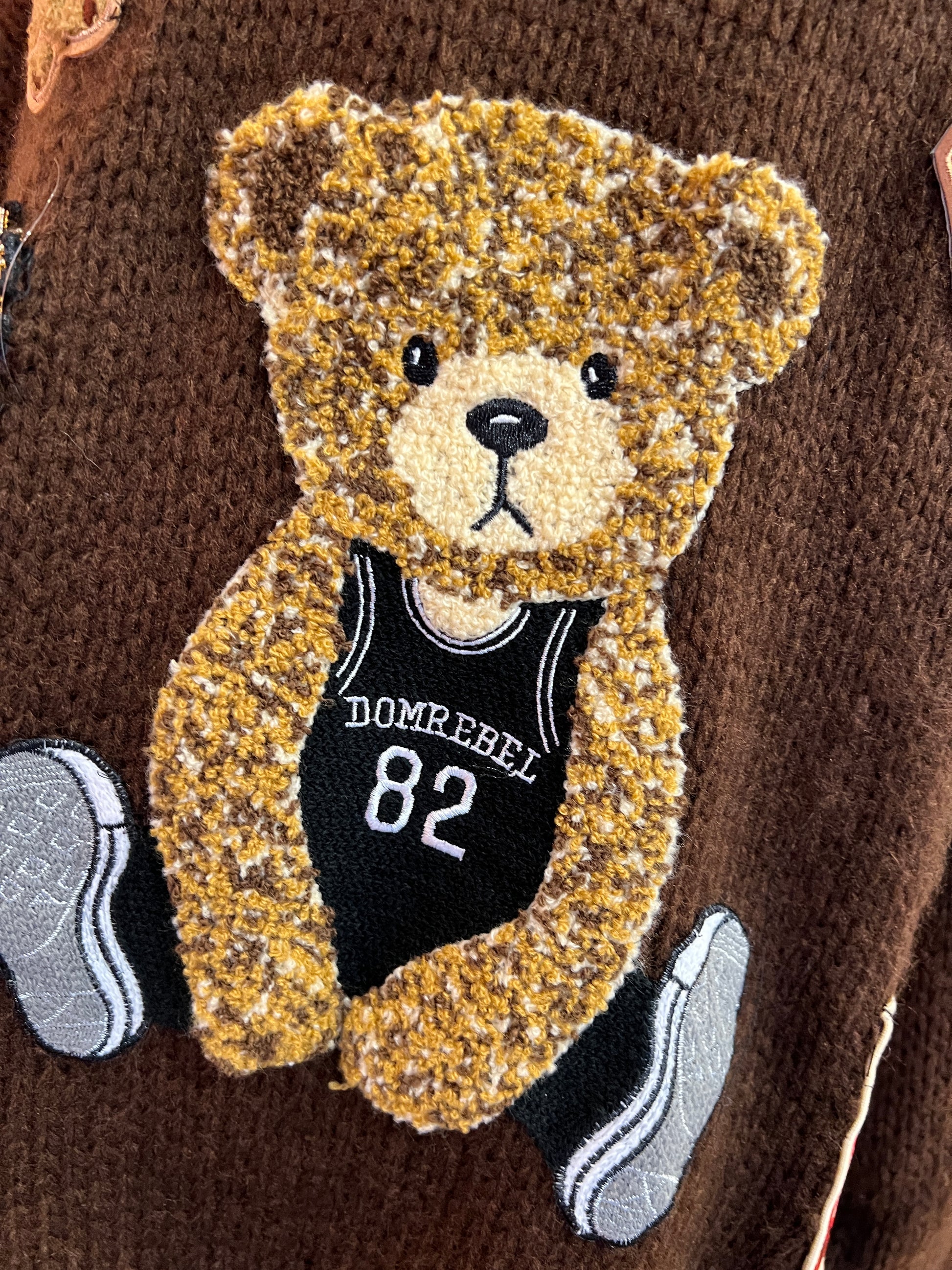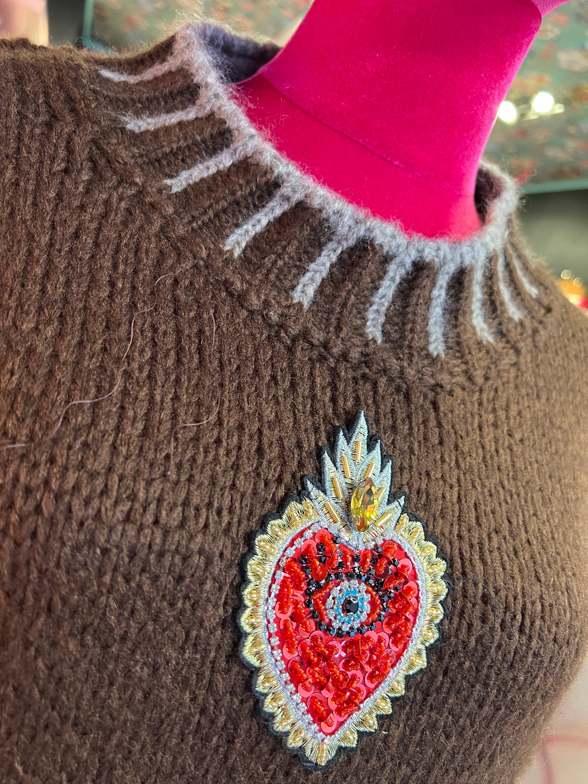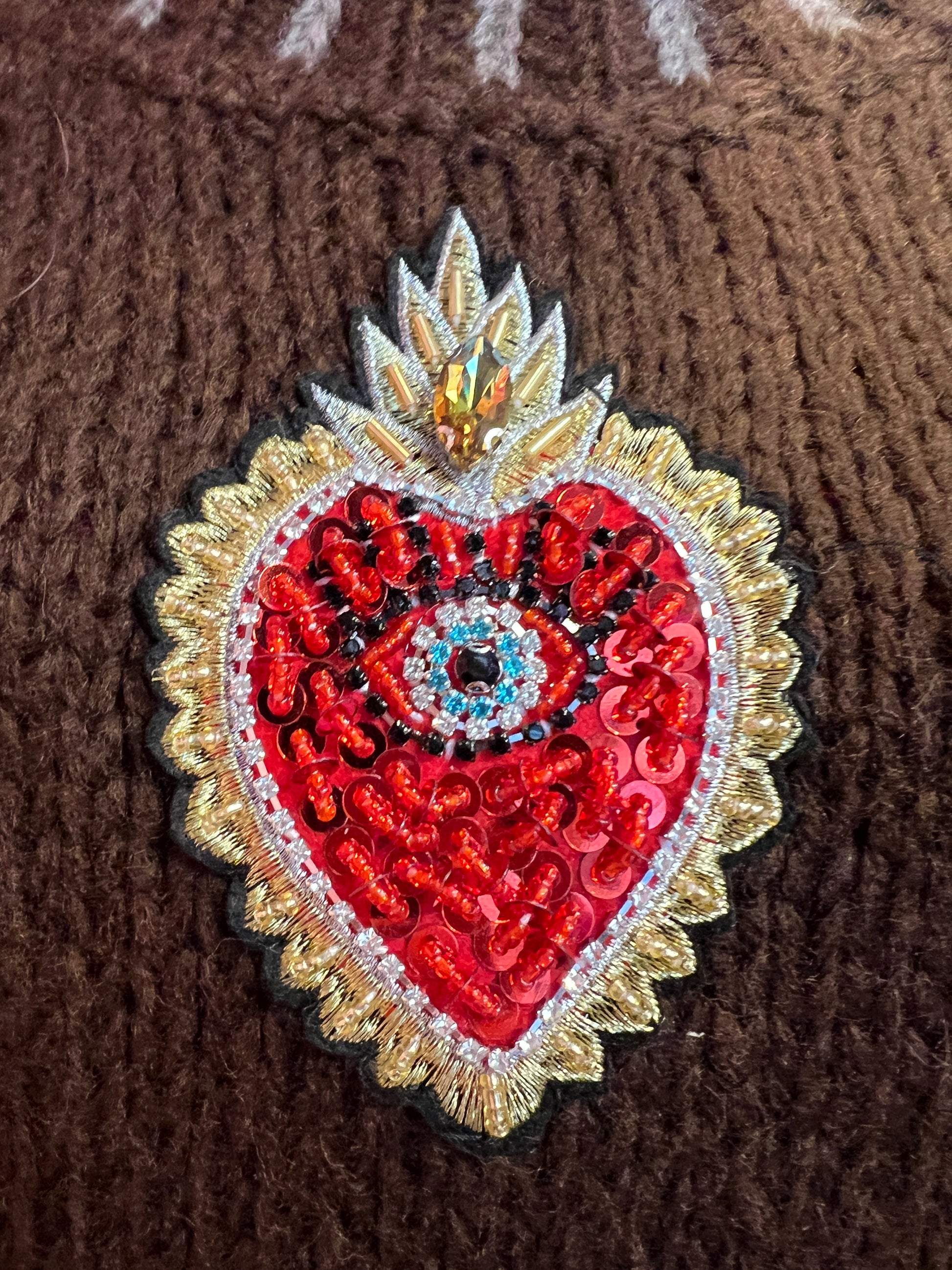 ABpink 🩷 maglia over cioccolato con profili grigi con pacht teddy e cuori sacri perline