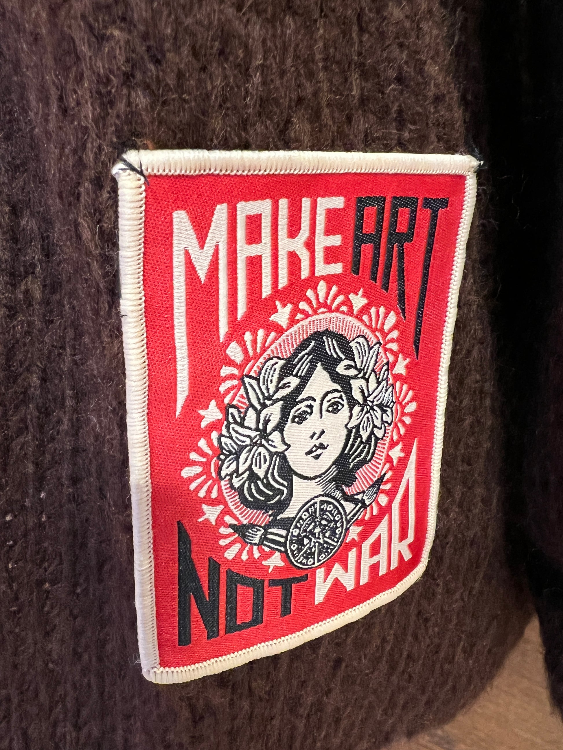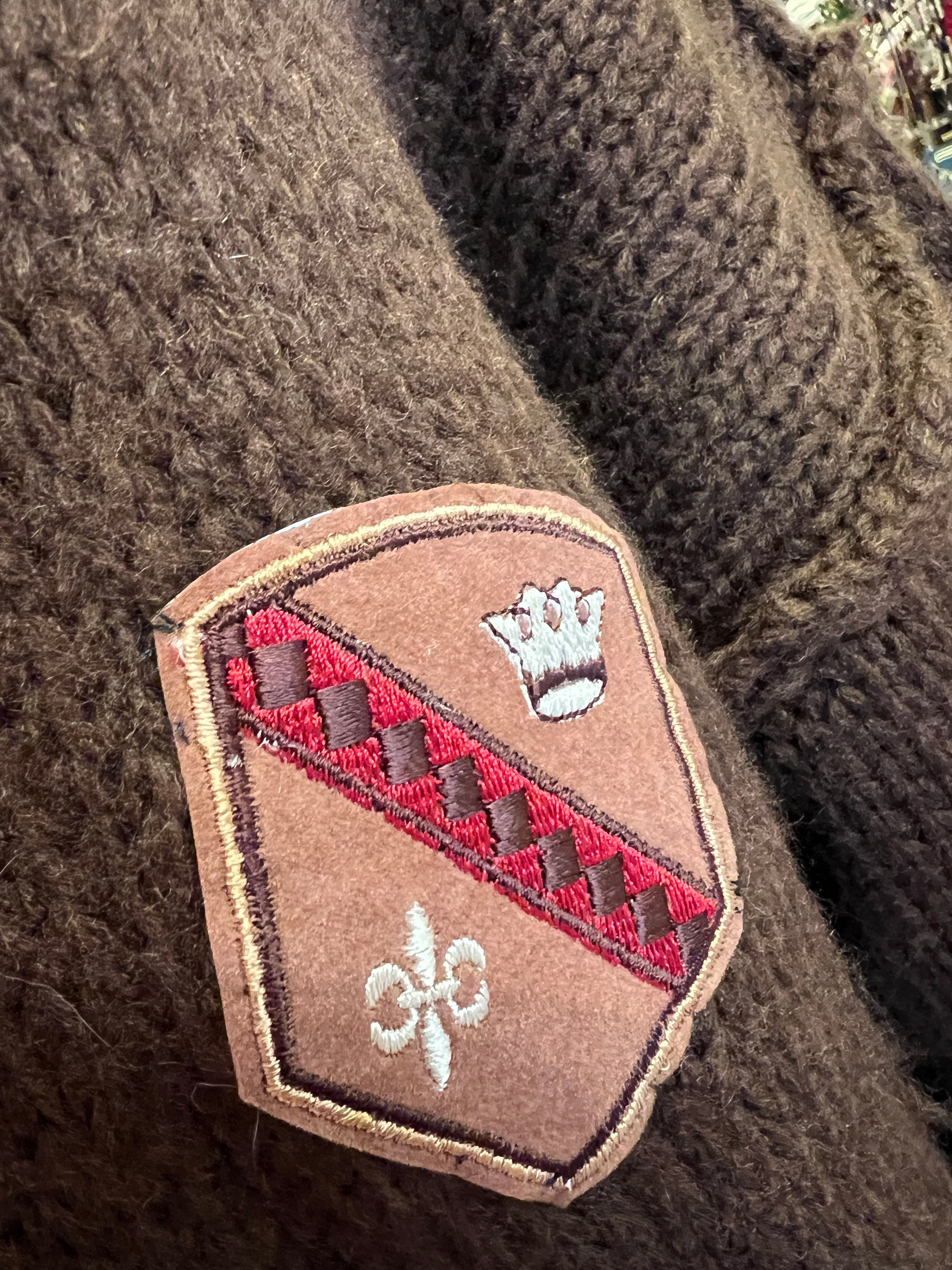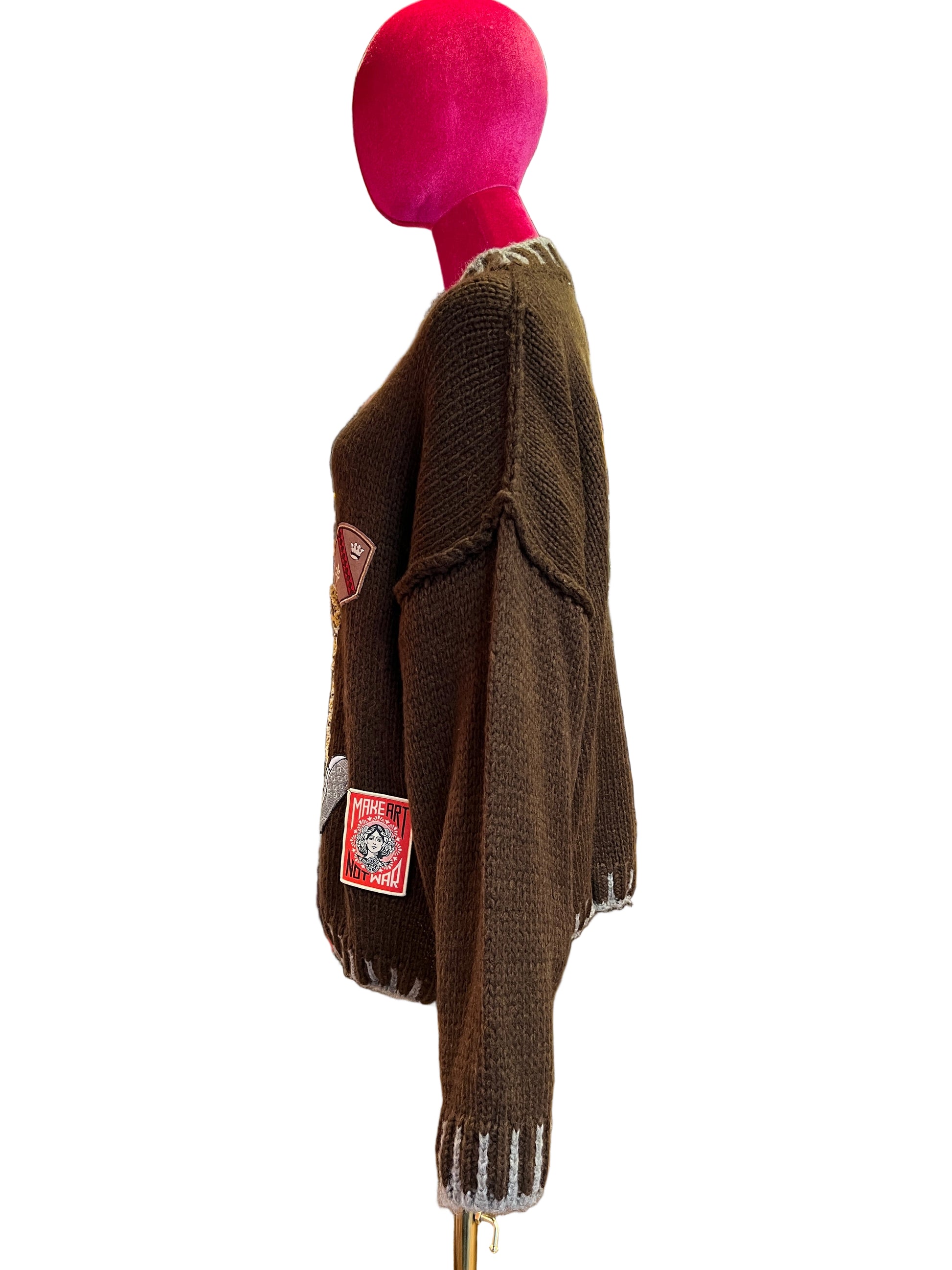 ABpink 🩷 maglia over cioccolato con profili grigi con pacht teddy e cuori sacri perline