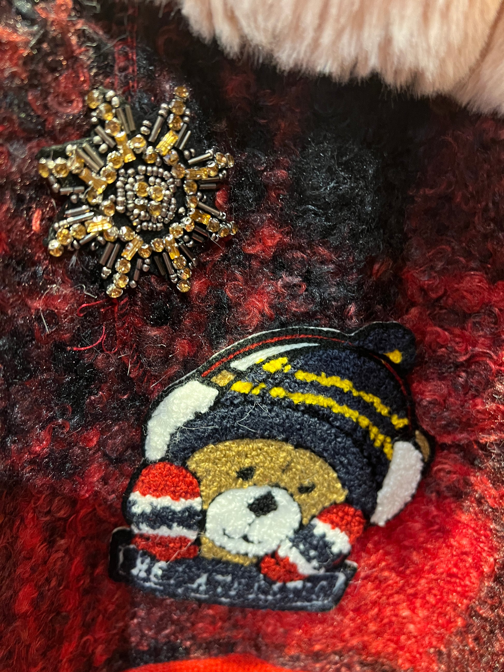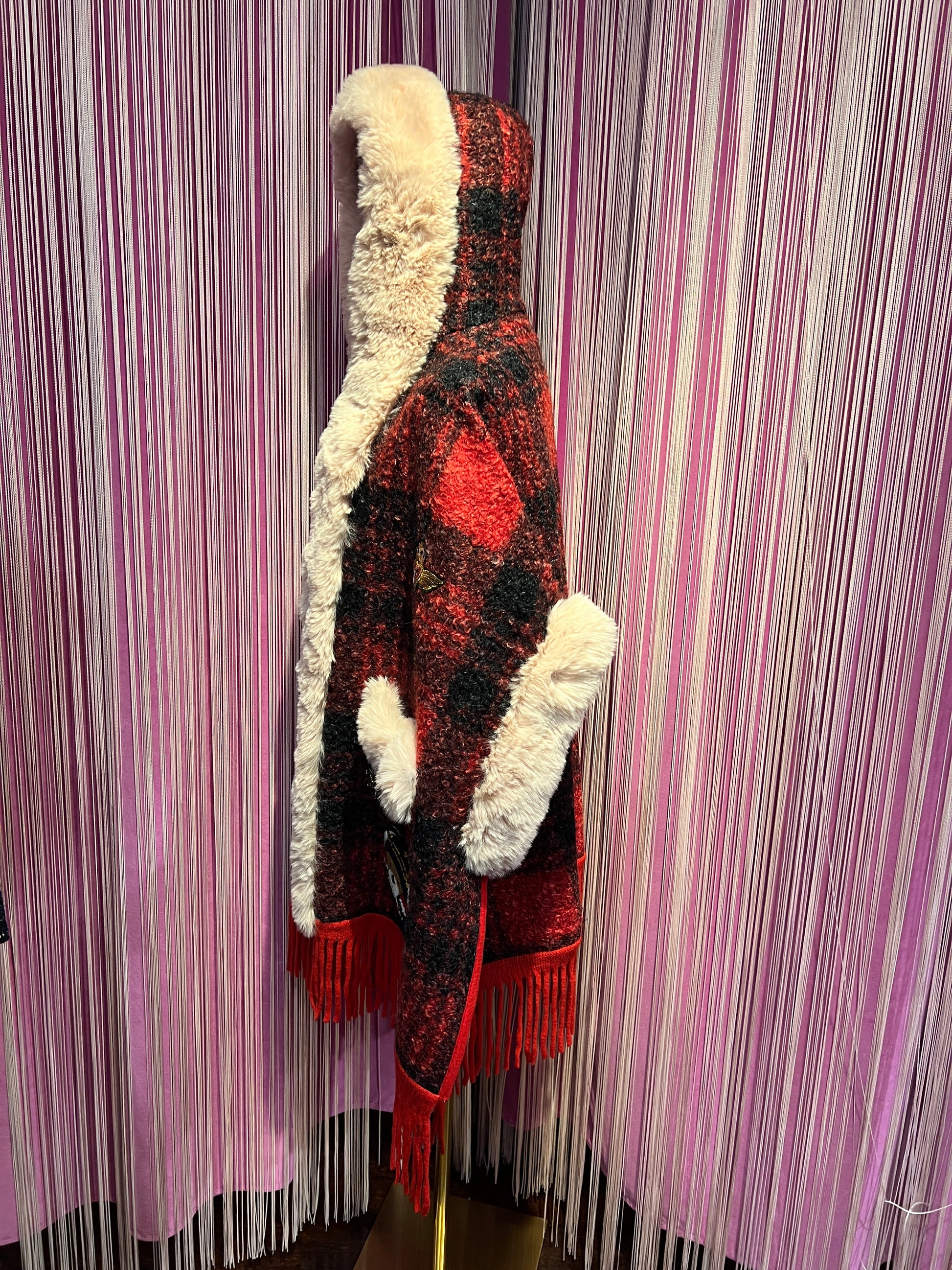 ABpink🩷 mantella boucle fantasia tartan con cappuccio, interno in ecopelle patch teddy