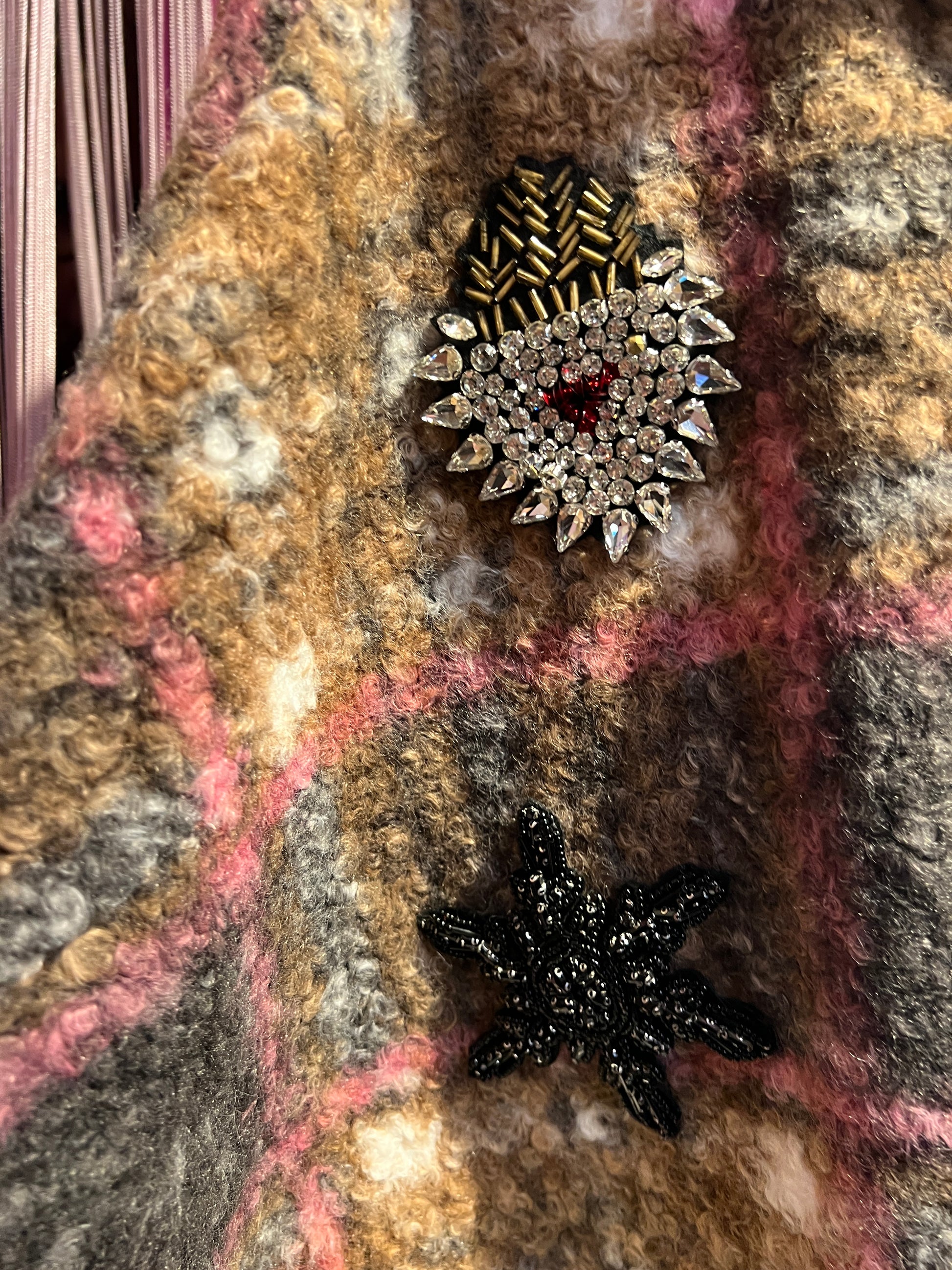 ABpink 🩷 mantella boucle ‘ fantasia tartan con cappuccio , interno in ecopelliccia, patch teschi cristalli