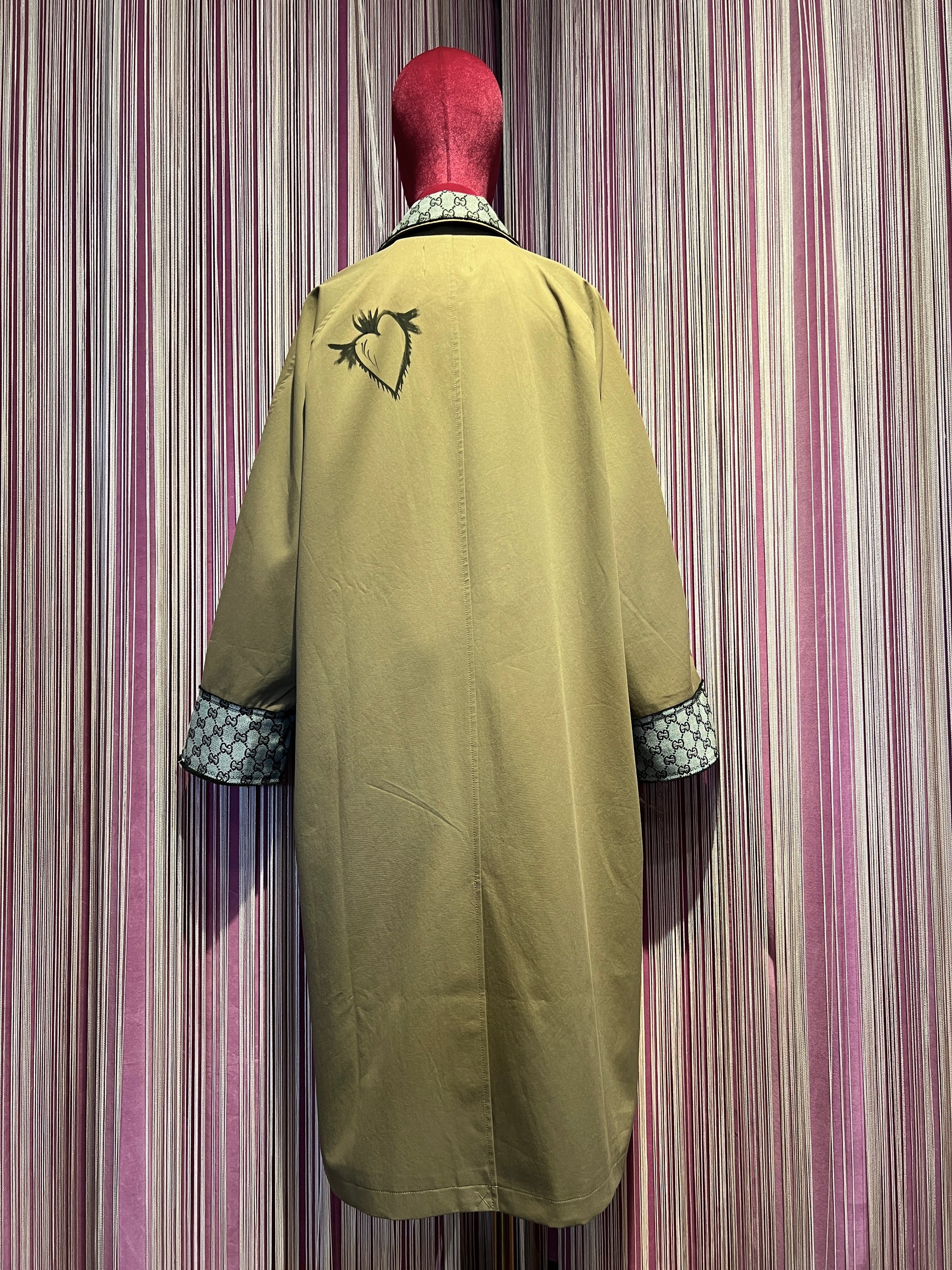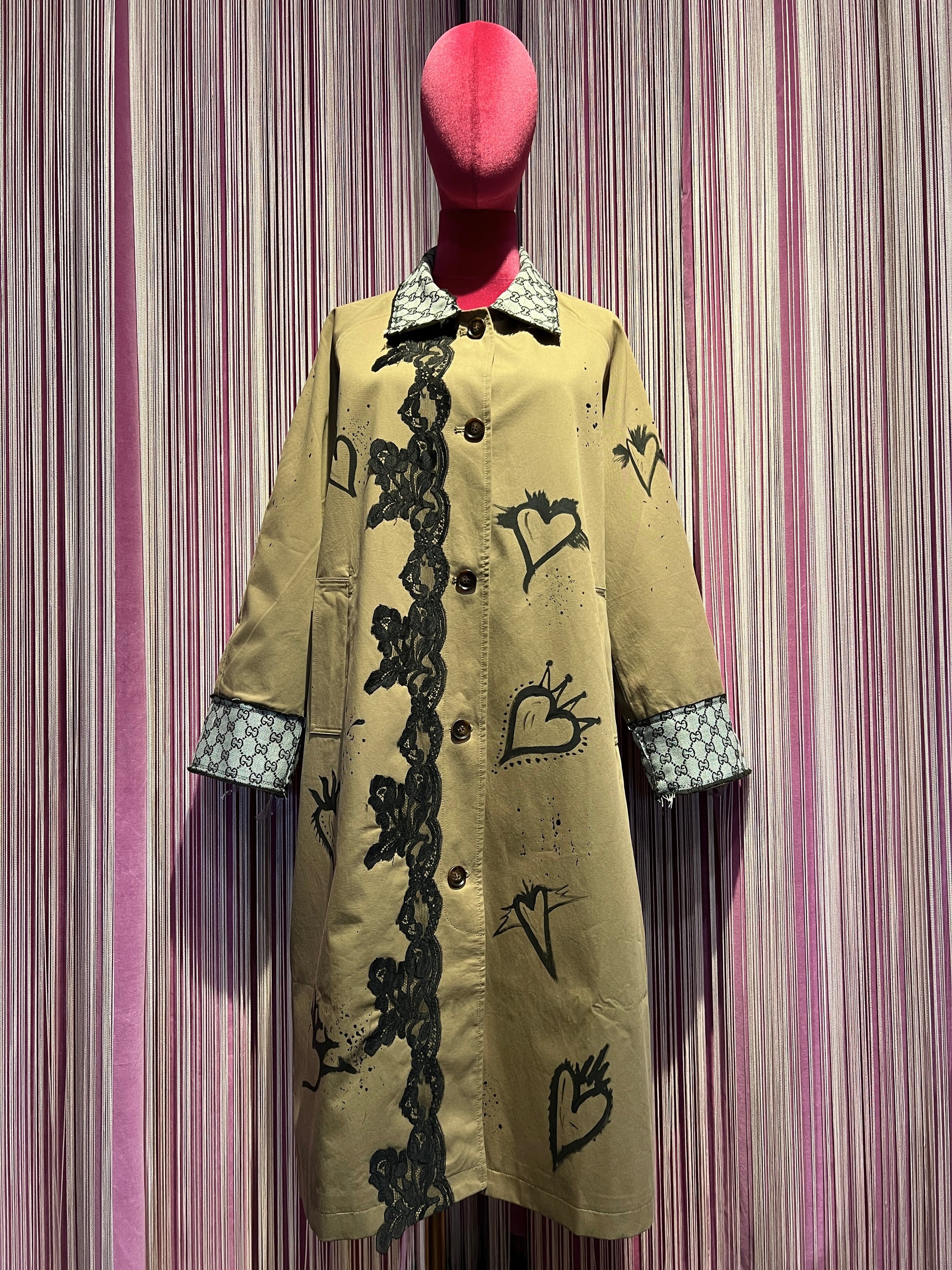 ABpink🩷 trekkina stoffa vintage con pizzo nero e cuori dipinti