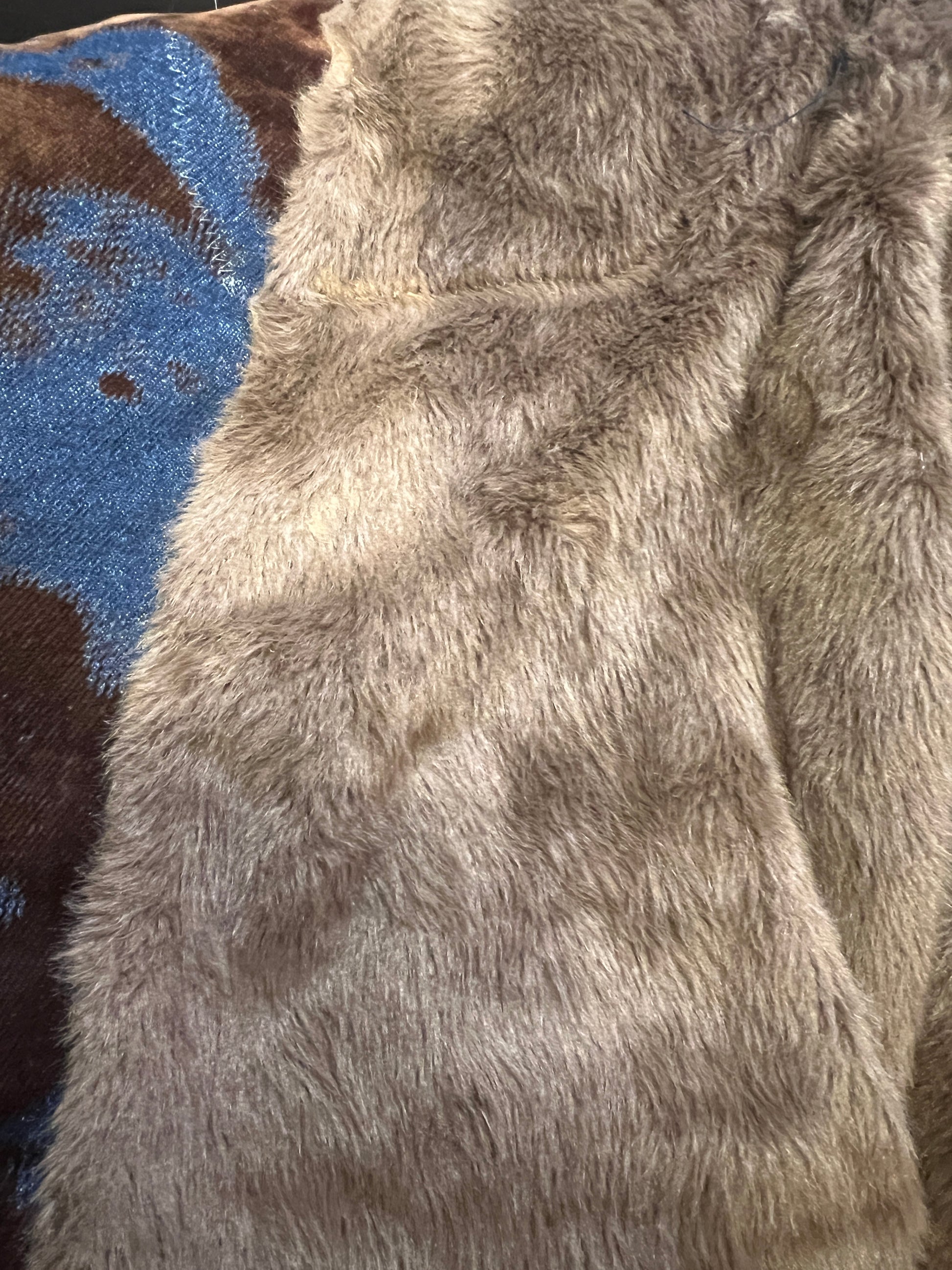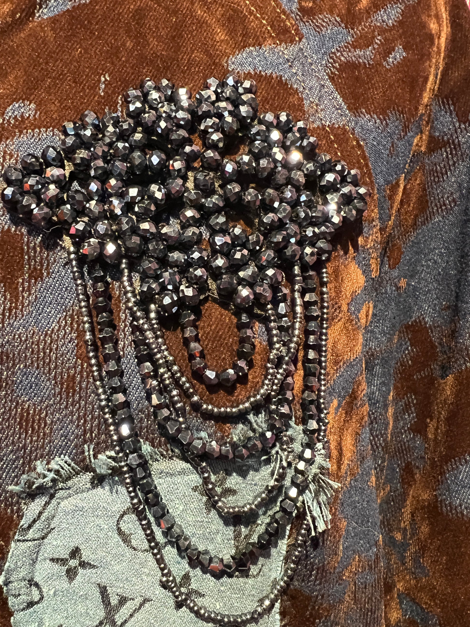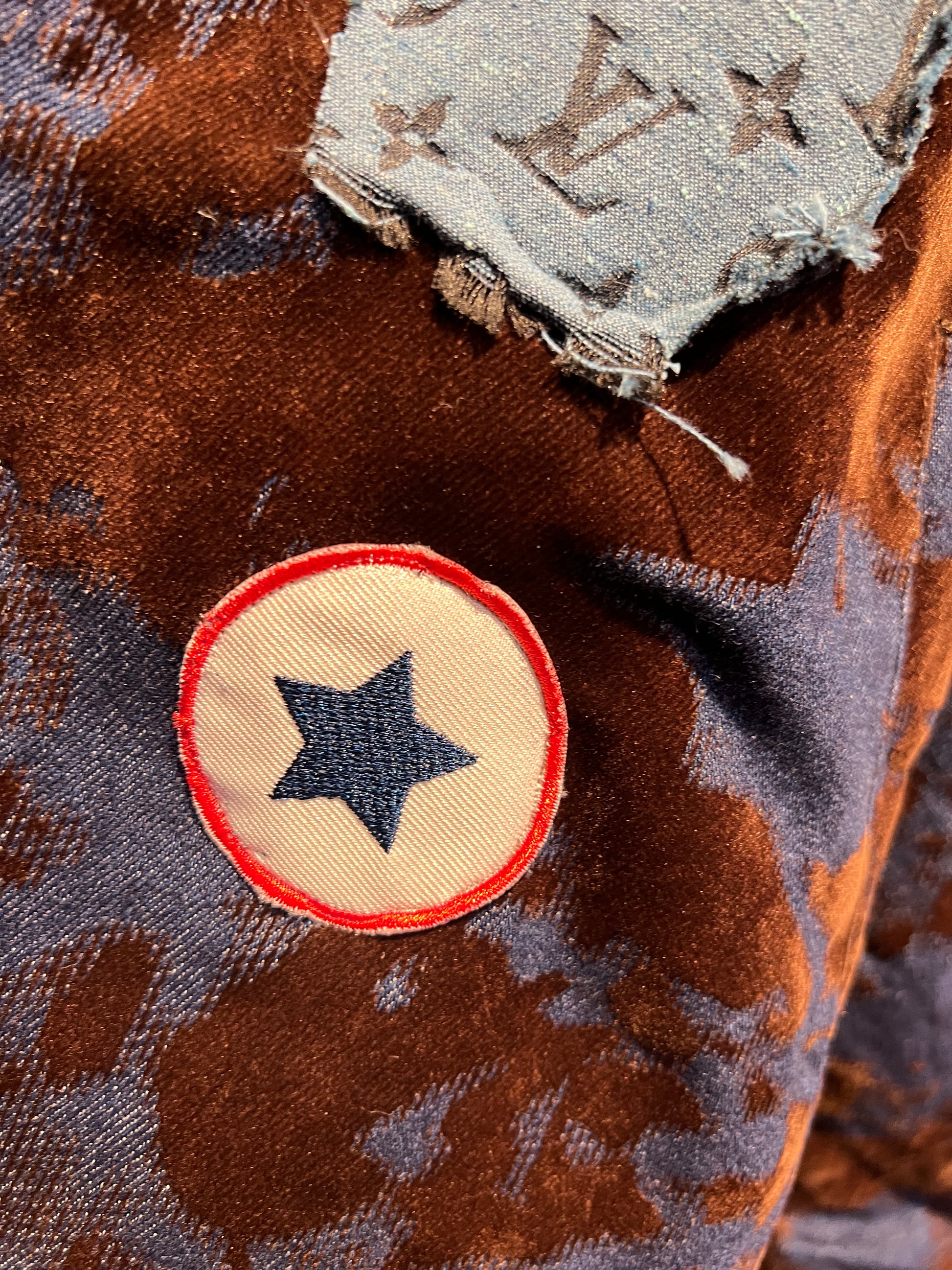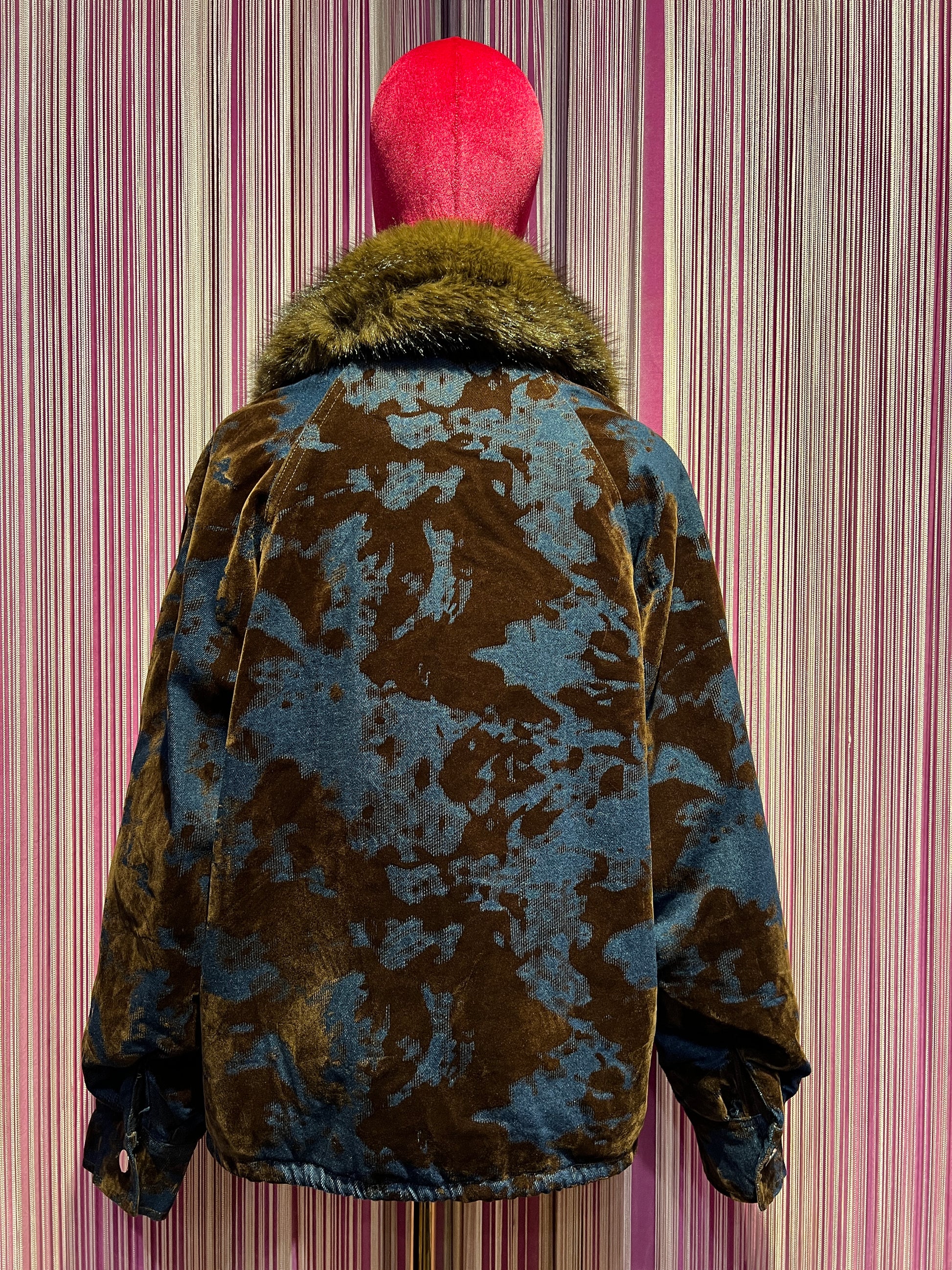ABpink 🩷vellutina . Giubbino velluto con interno in ecopelliccia, colletto rimovibile , applicazioni patch cristalli blu e tessuto LV