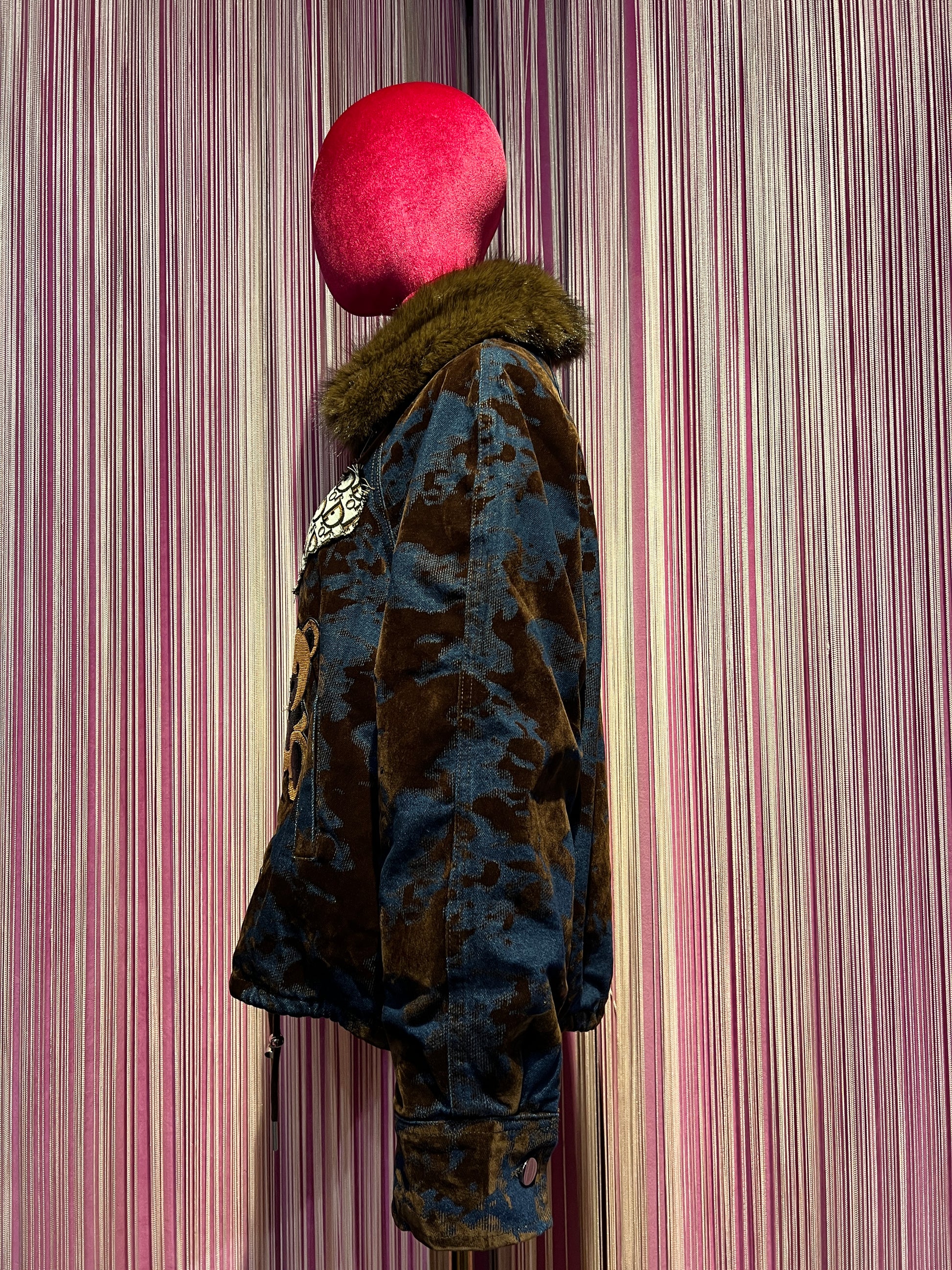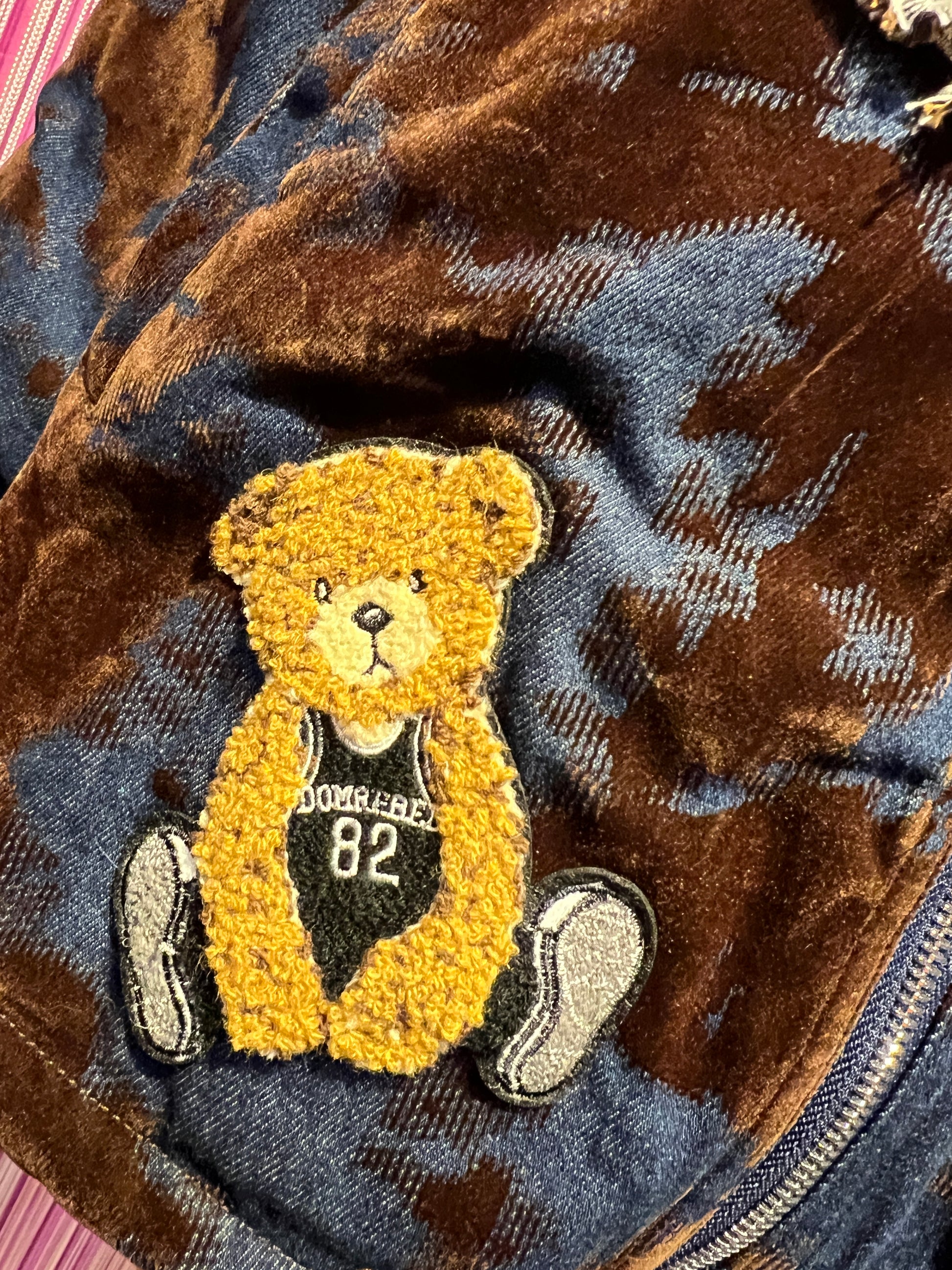 ABpink 🩷vellutina.giubbino velluto con interno in ecopelliccia ,colletto rimovibile, applicazioni patch teddy in micro paillettes , teddy in tessuto e patch cristalli
