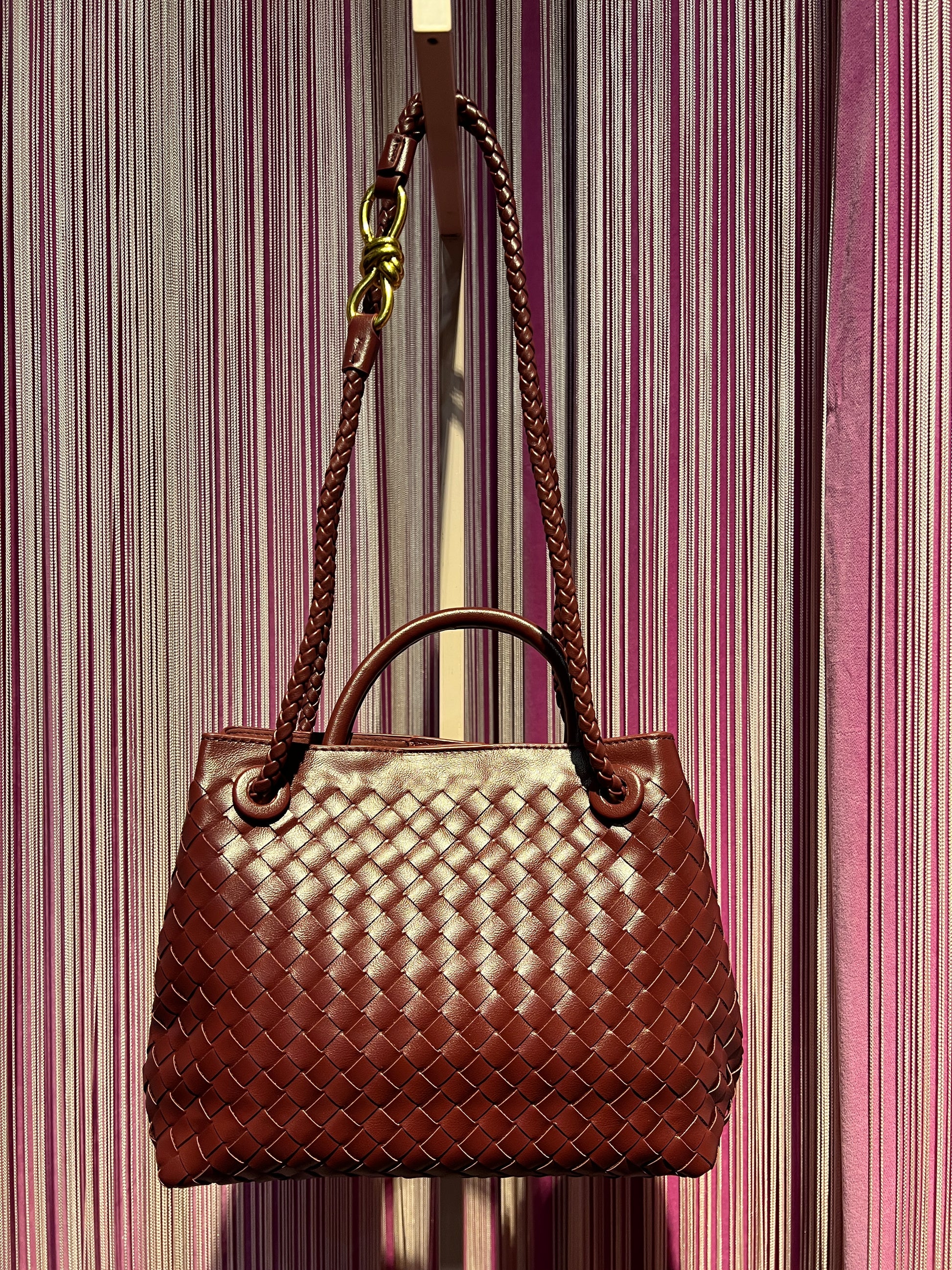 Borsa ecopelle burgundy con lavorazione ad intreccio e tracolla