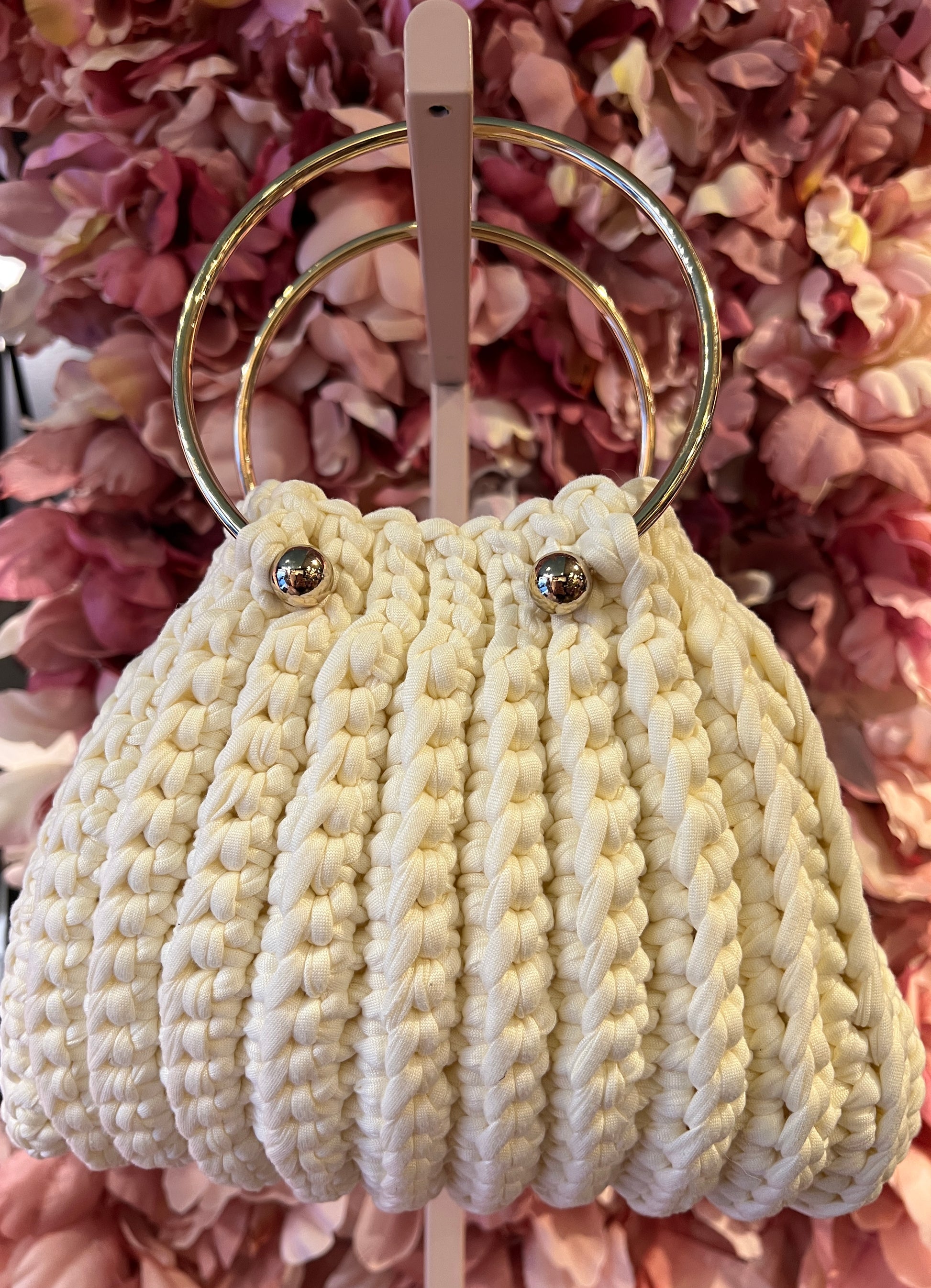 Le chicche di Alessia borsa due manici oro fettuccia di cotone panna