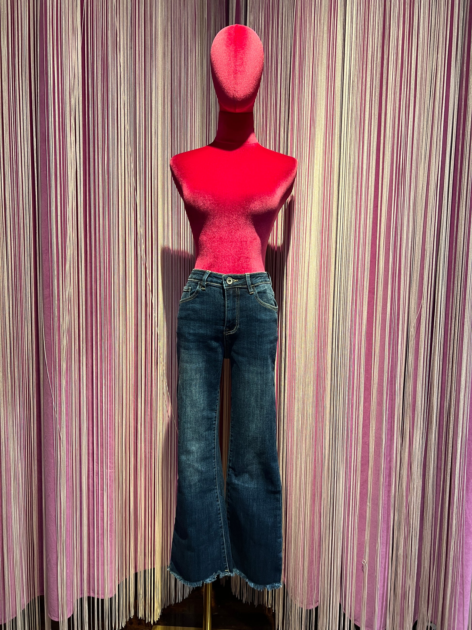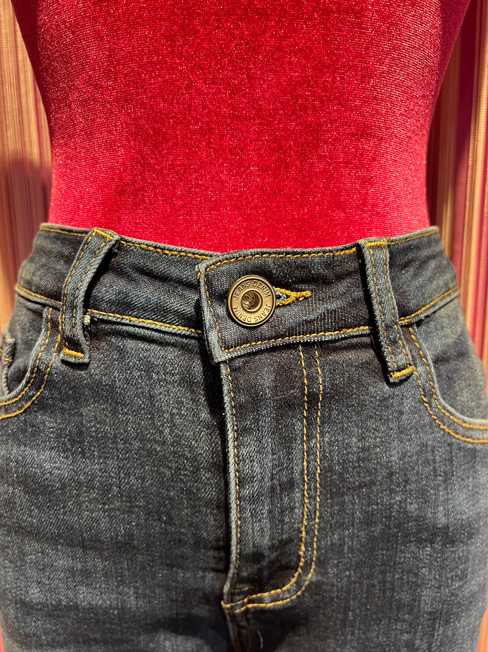 Mon amour Paris jeans denim sfrangiato elasticizzato