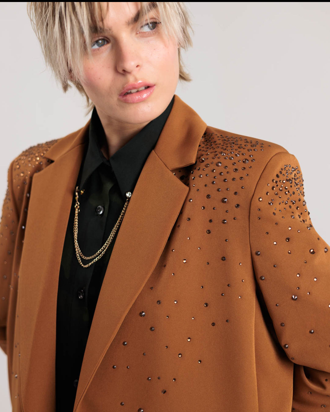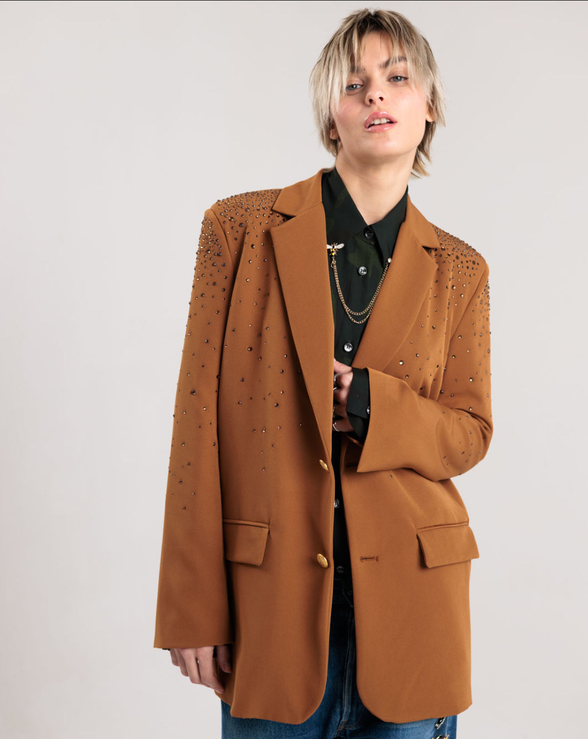 Rossano Perini blazer tabacco con strass