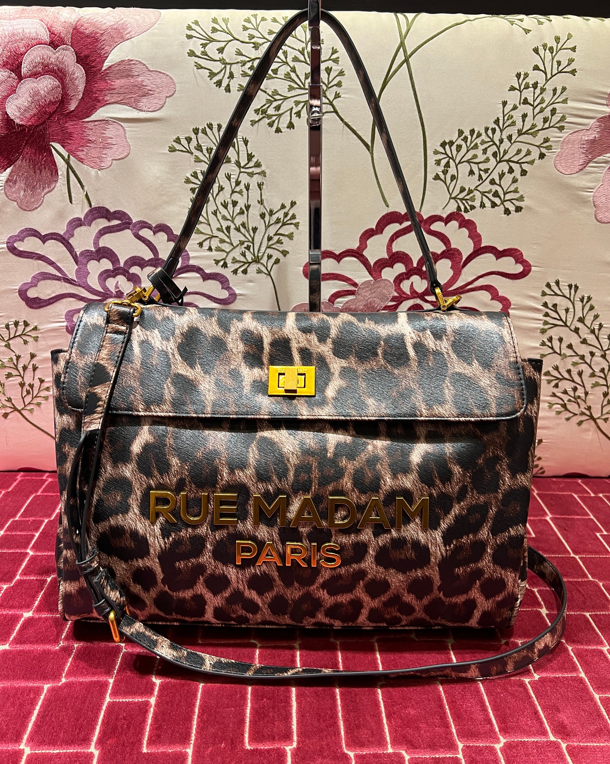 Rue Madam Paris borsa ecopelle stampa leopardo con tracolla “Les jour xl “