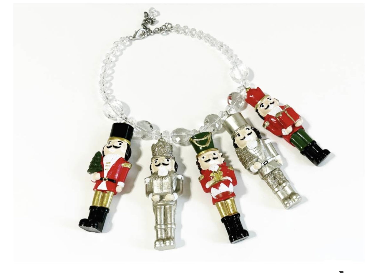 Sereku collana girocollo cristallo maxi chiaro con pendenti a forma di soldatini schiaccianoci in resina