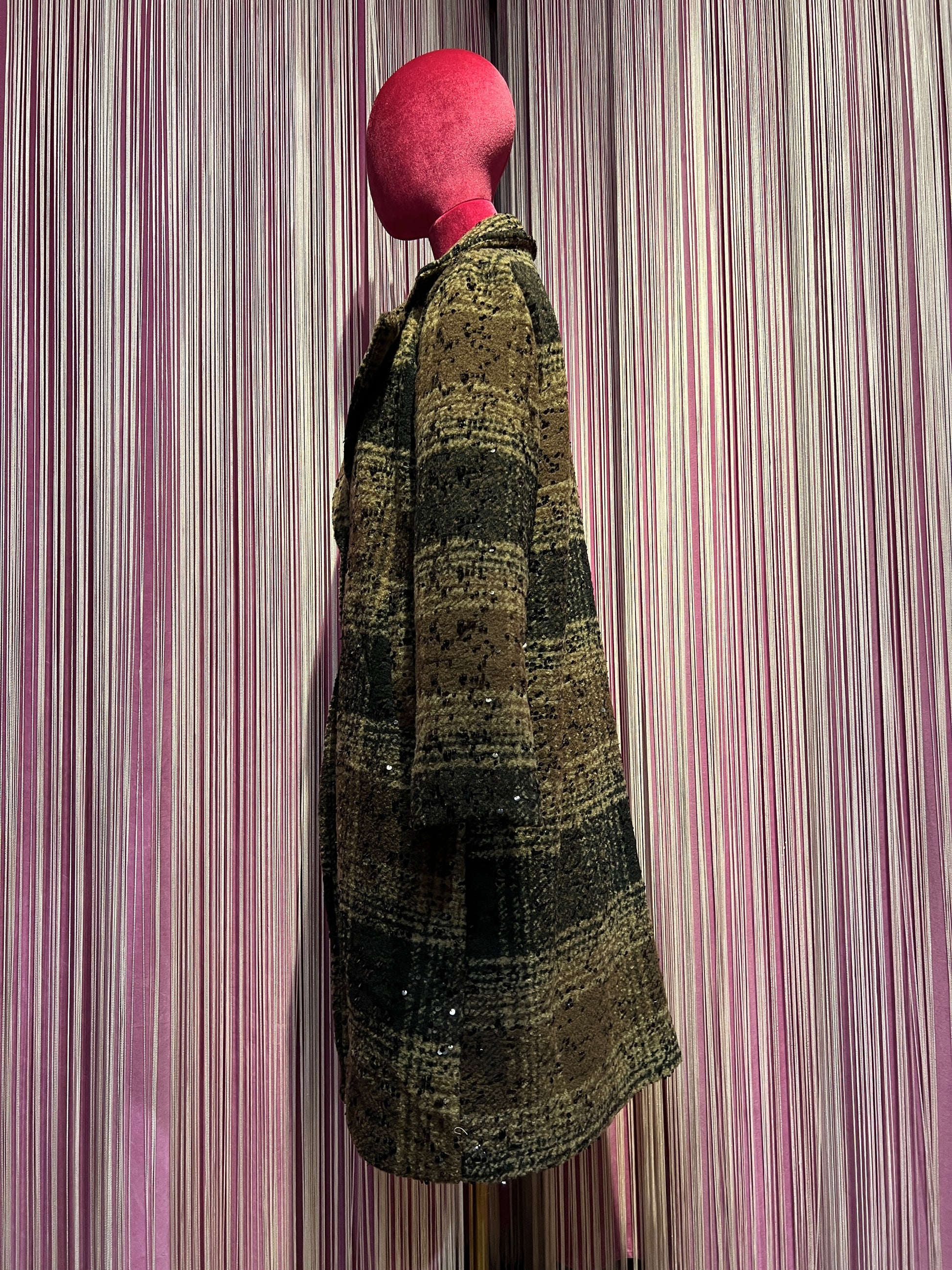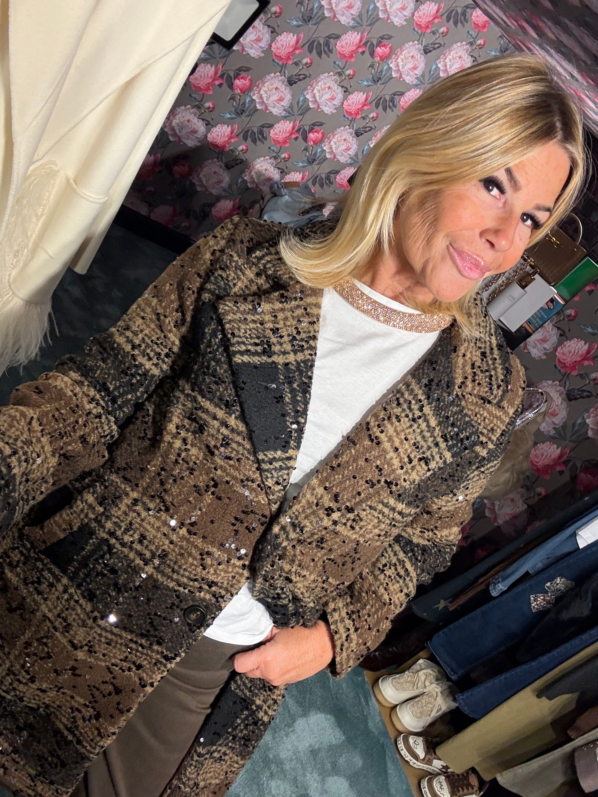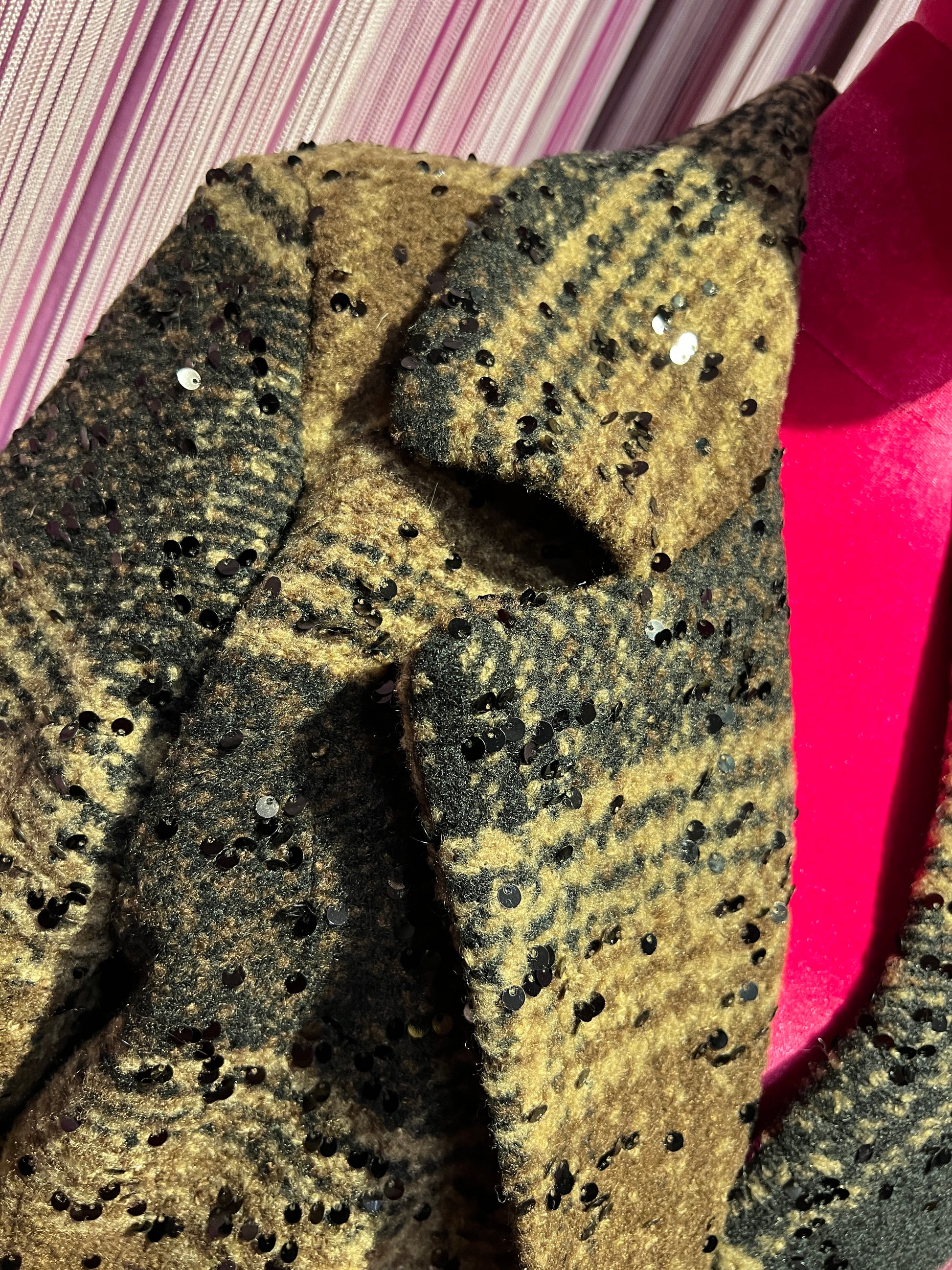 The Room cappottino tartan taglia unica ad un petto con micro paillettes nere