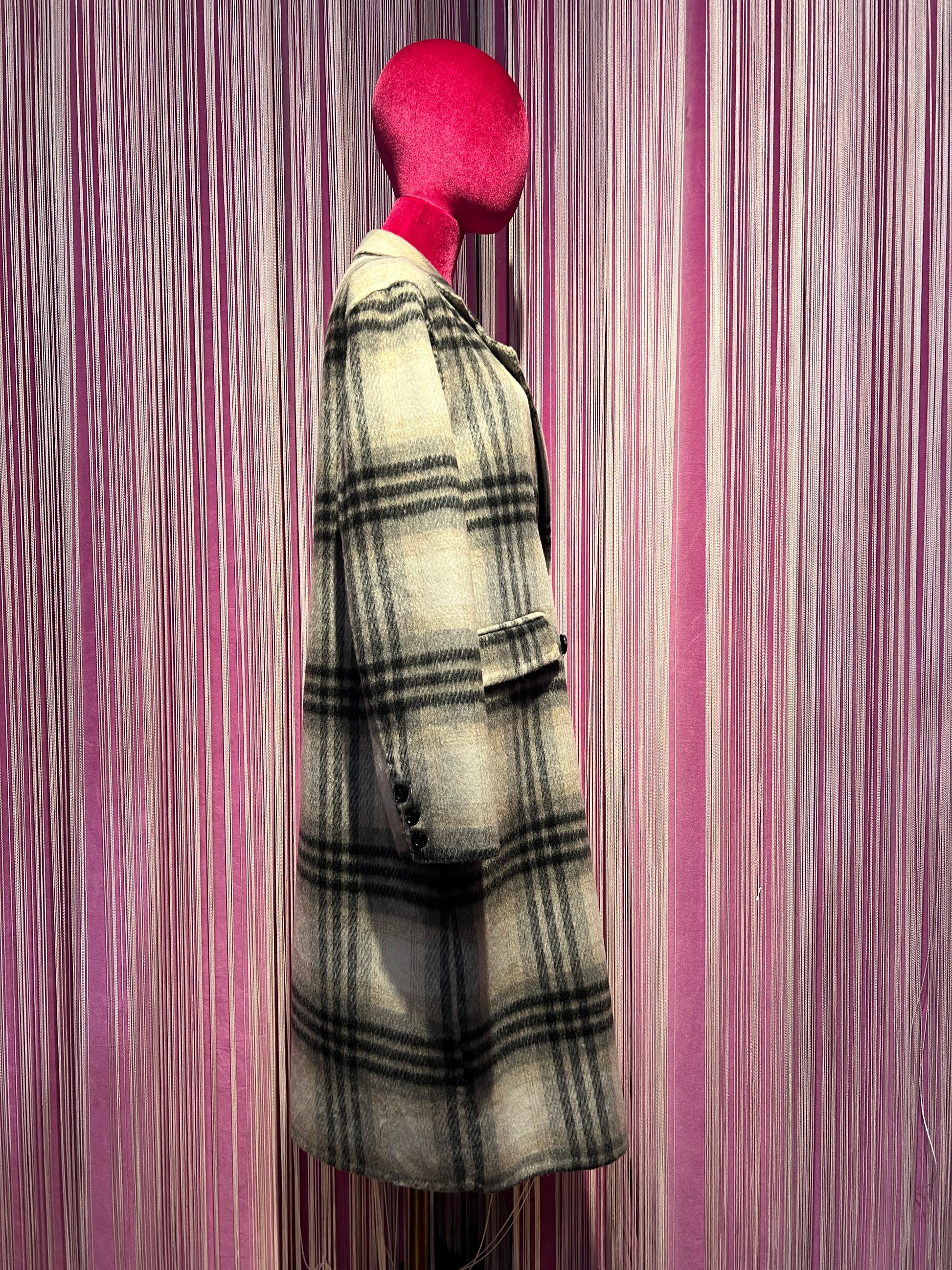 The room cappotto doppiopetto tartan nero grigio fondo panna