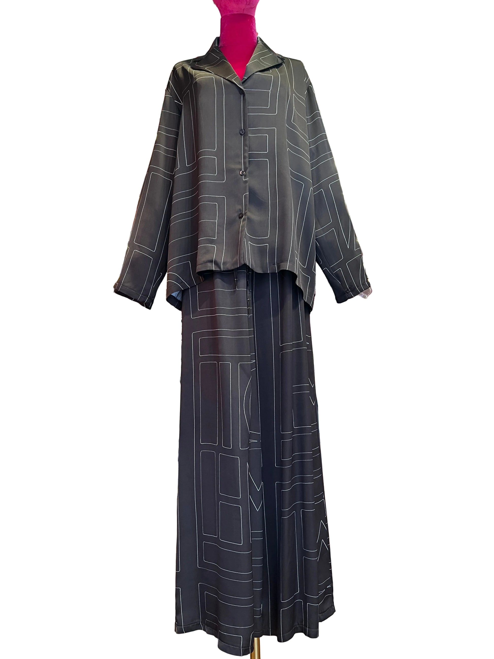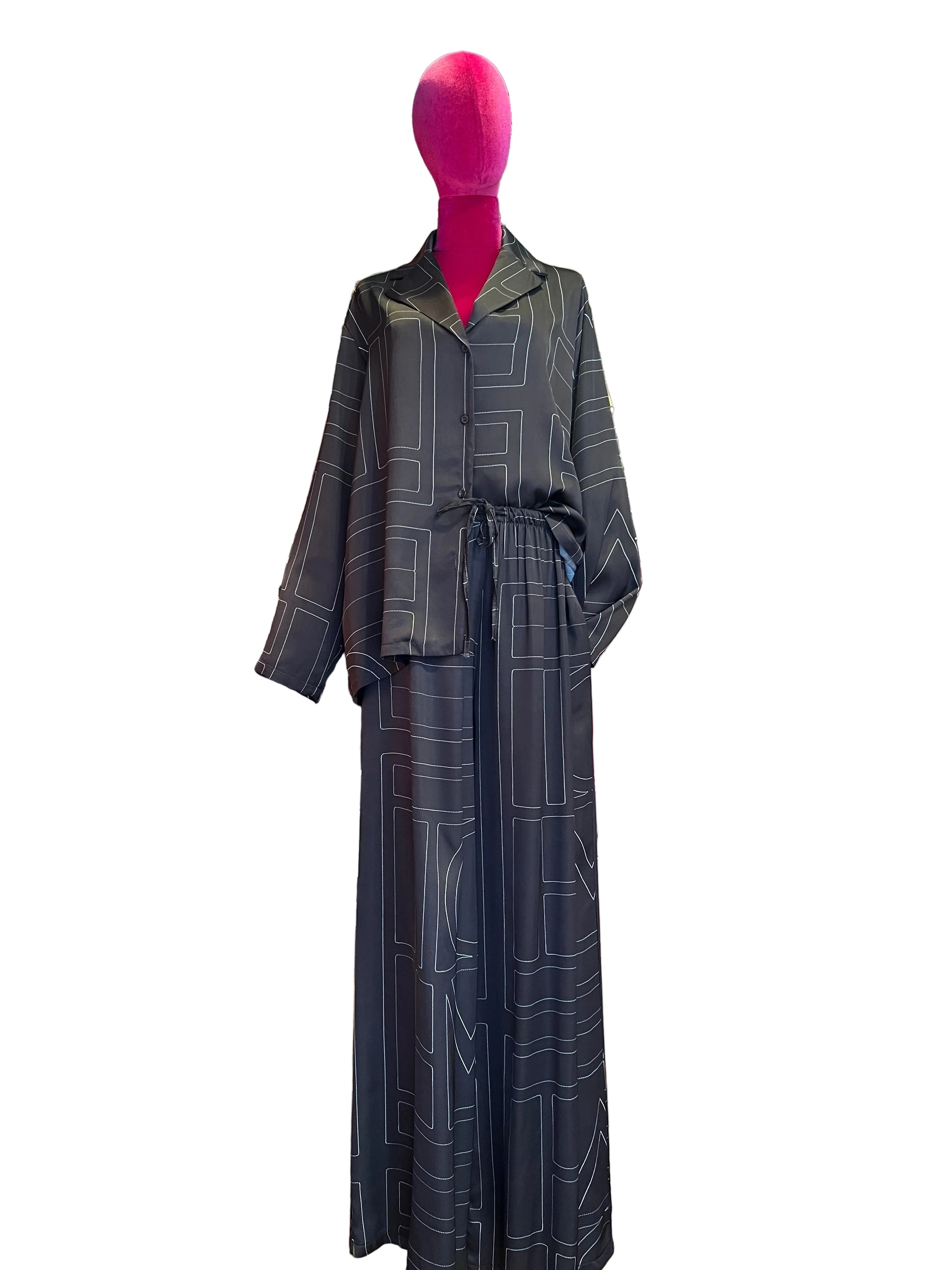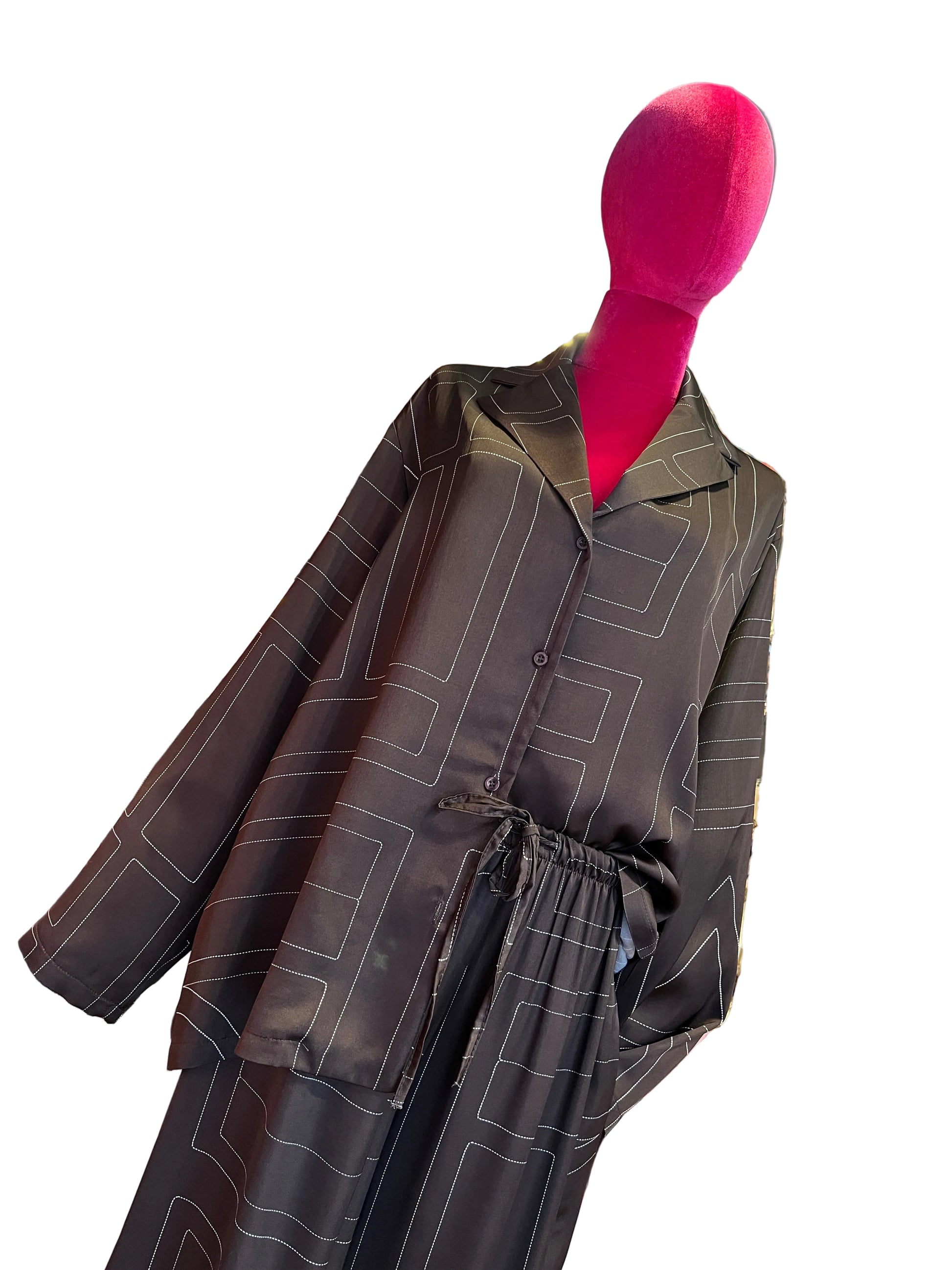 The room completo camicia e pantalone palazzo marrone e bianco