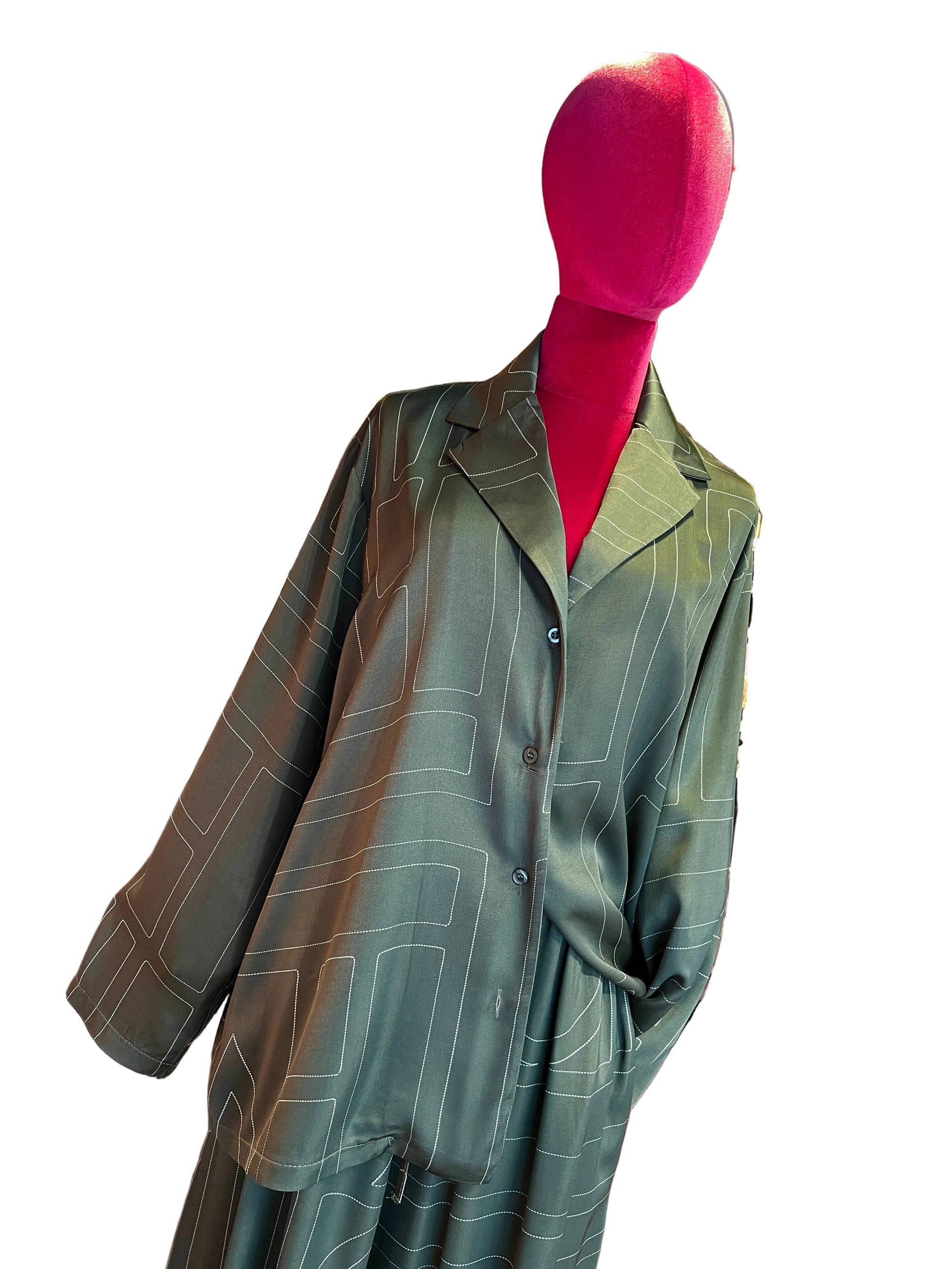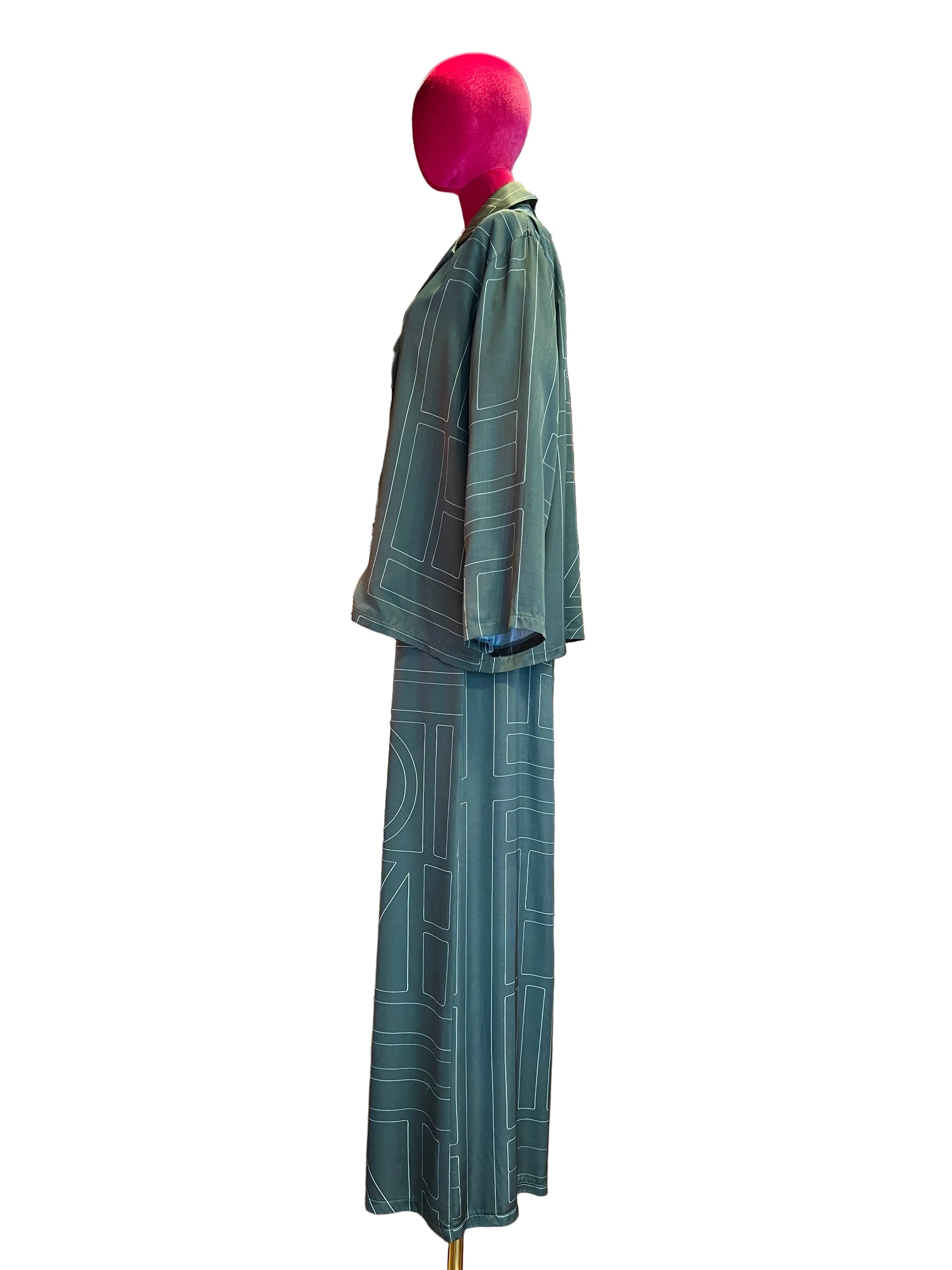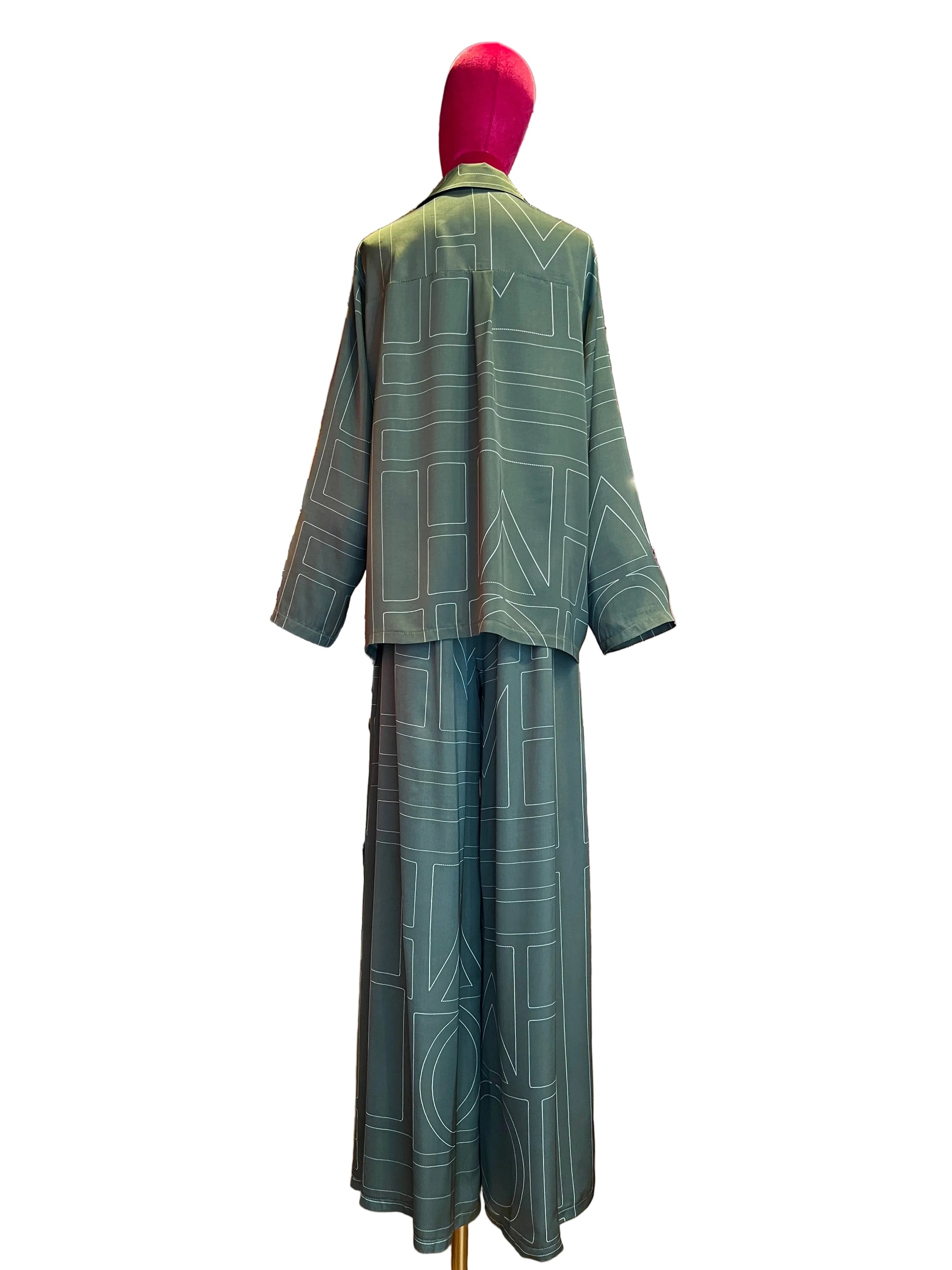 The room completo camicia e pantalone palazzo verde e bianco