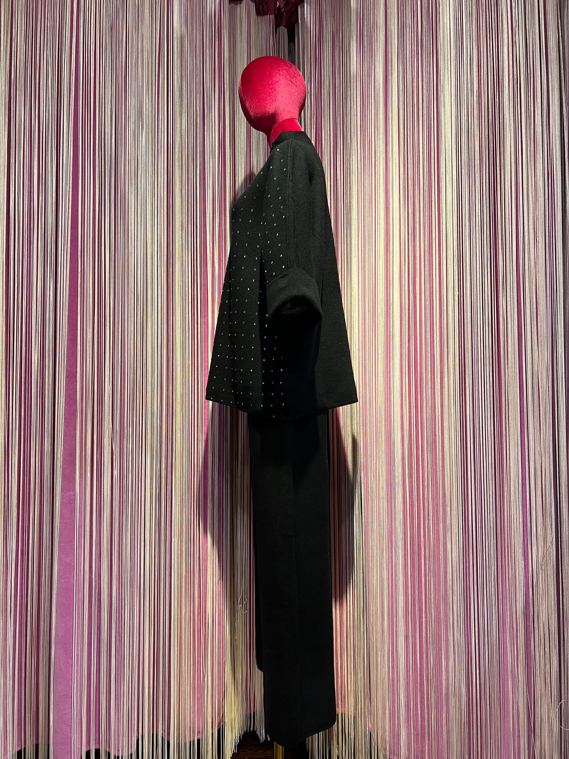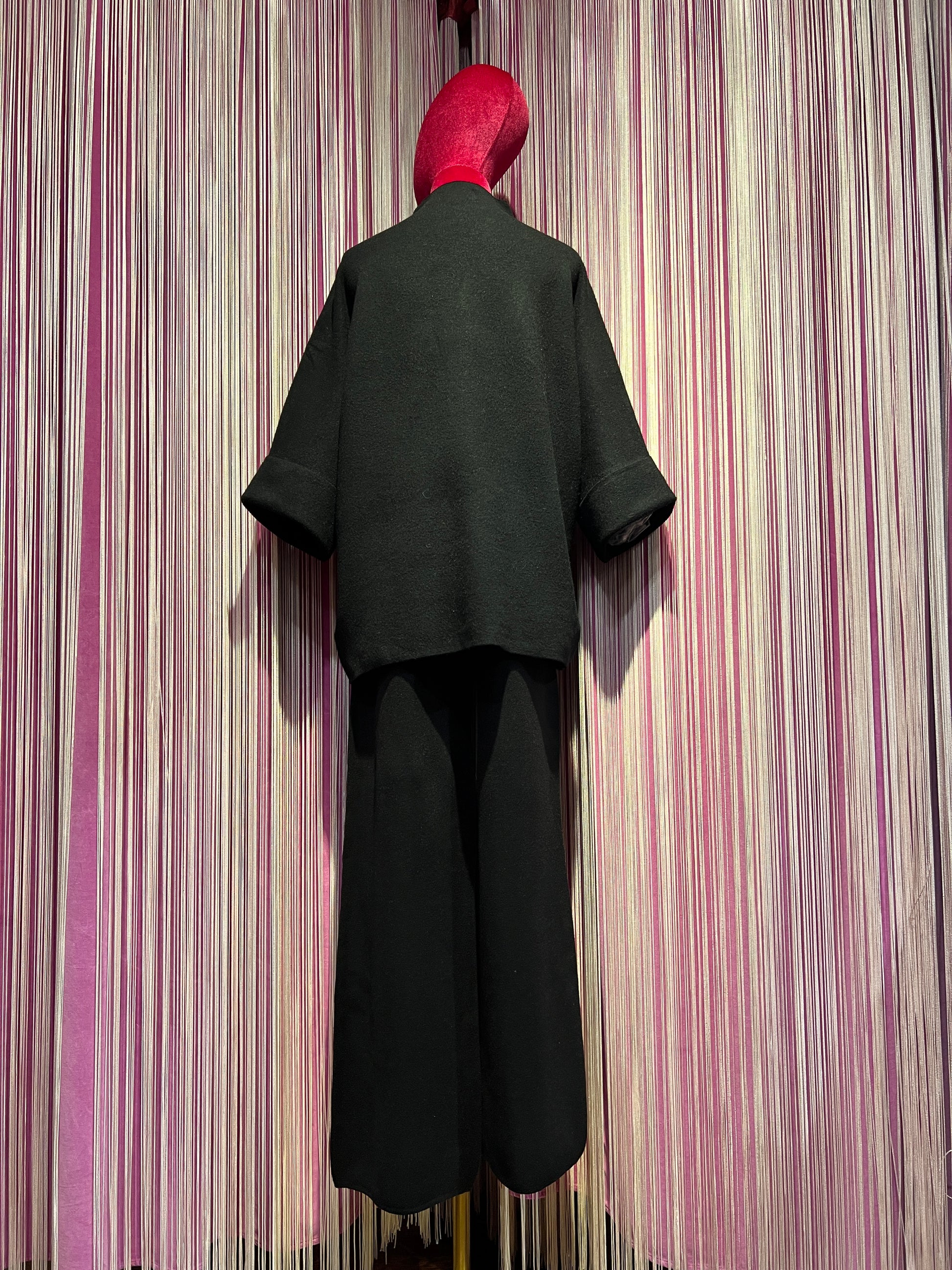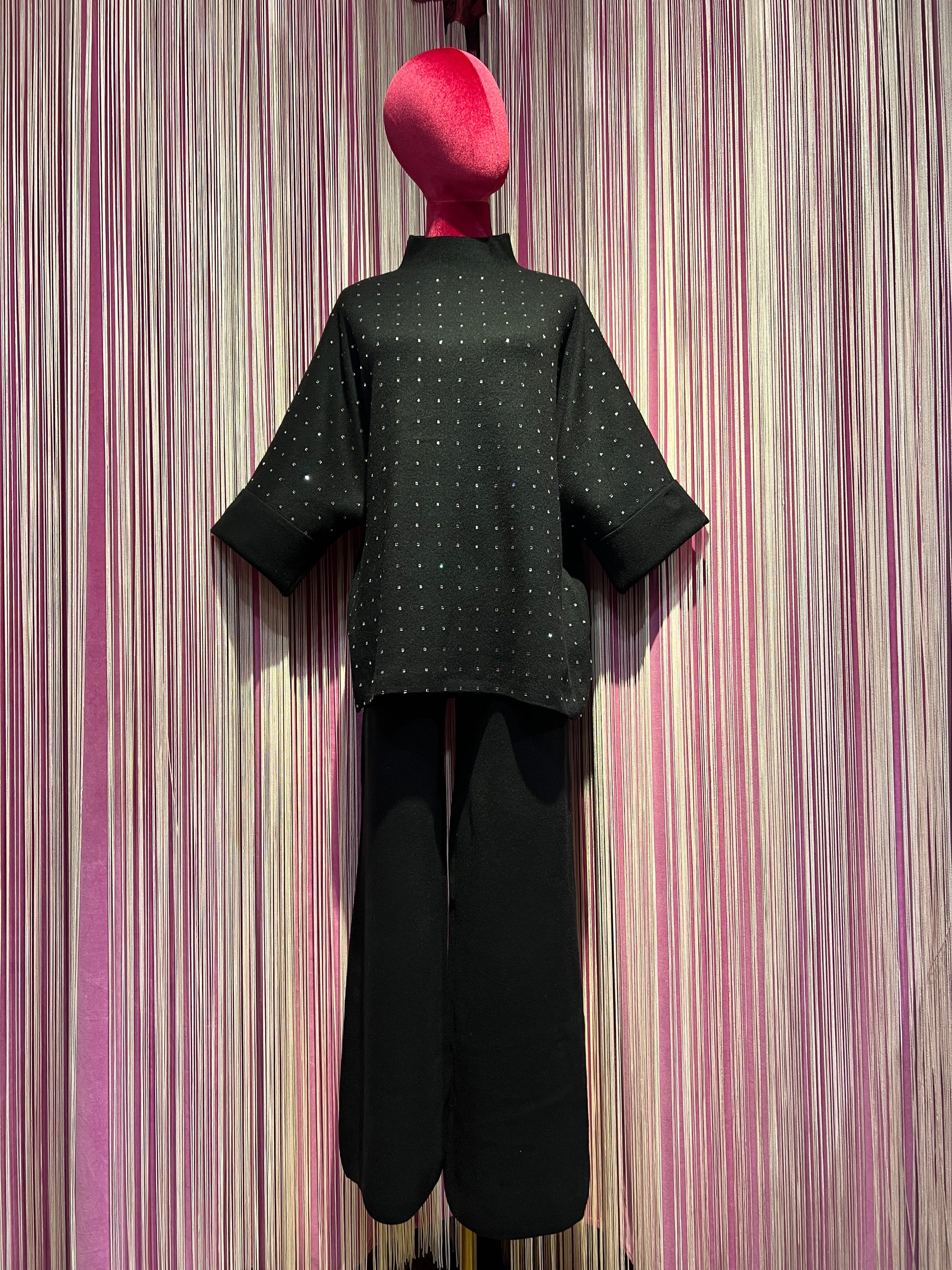The Room completo nero maglia con cristalli collo a cratere e maniche a 3/4, pantalone palazzo con elastico in vita