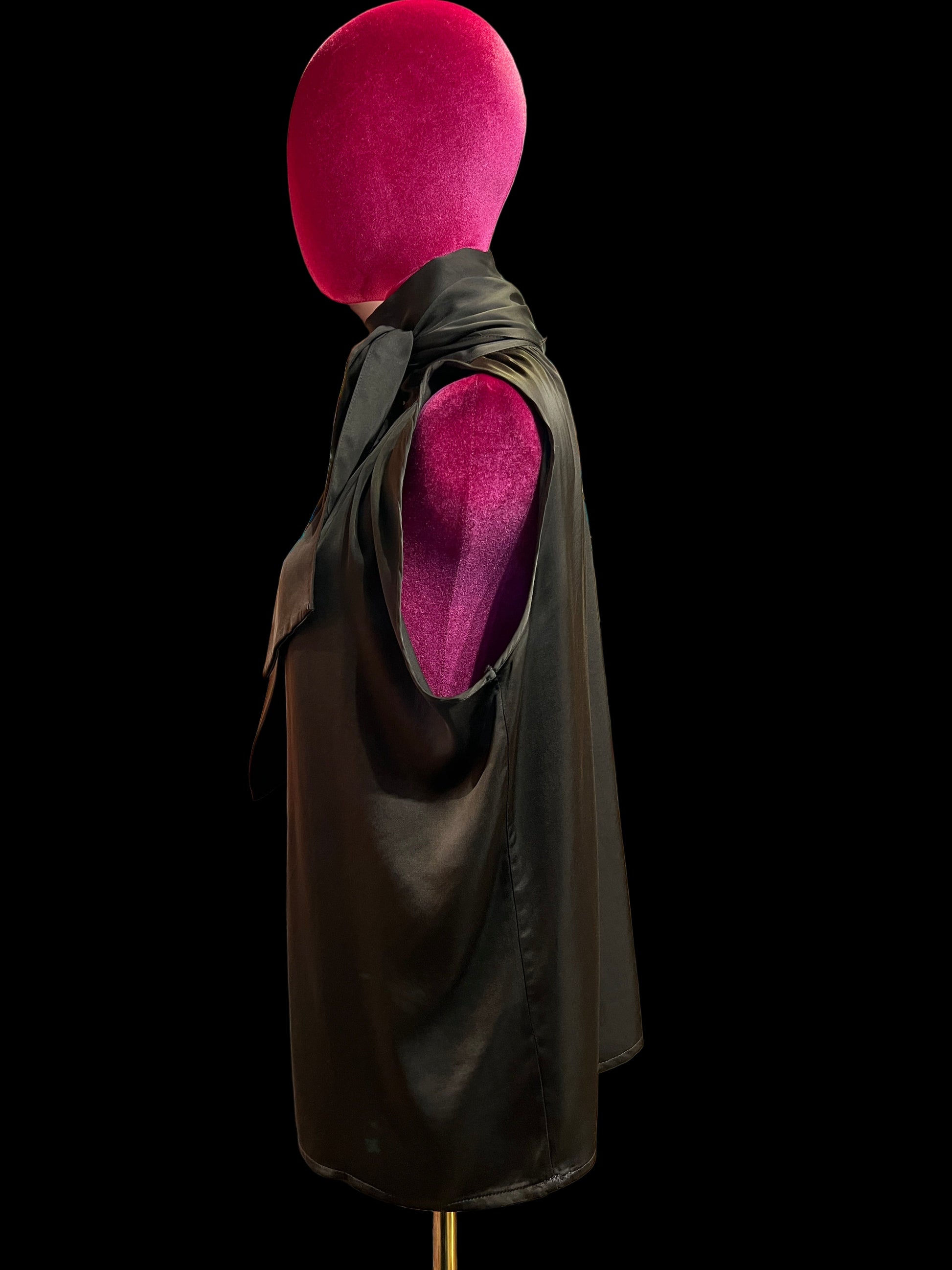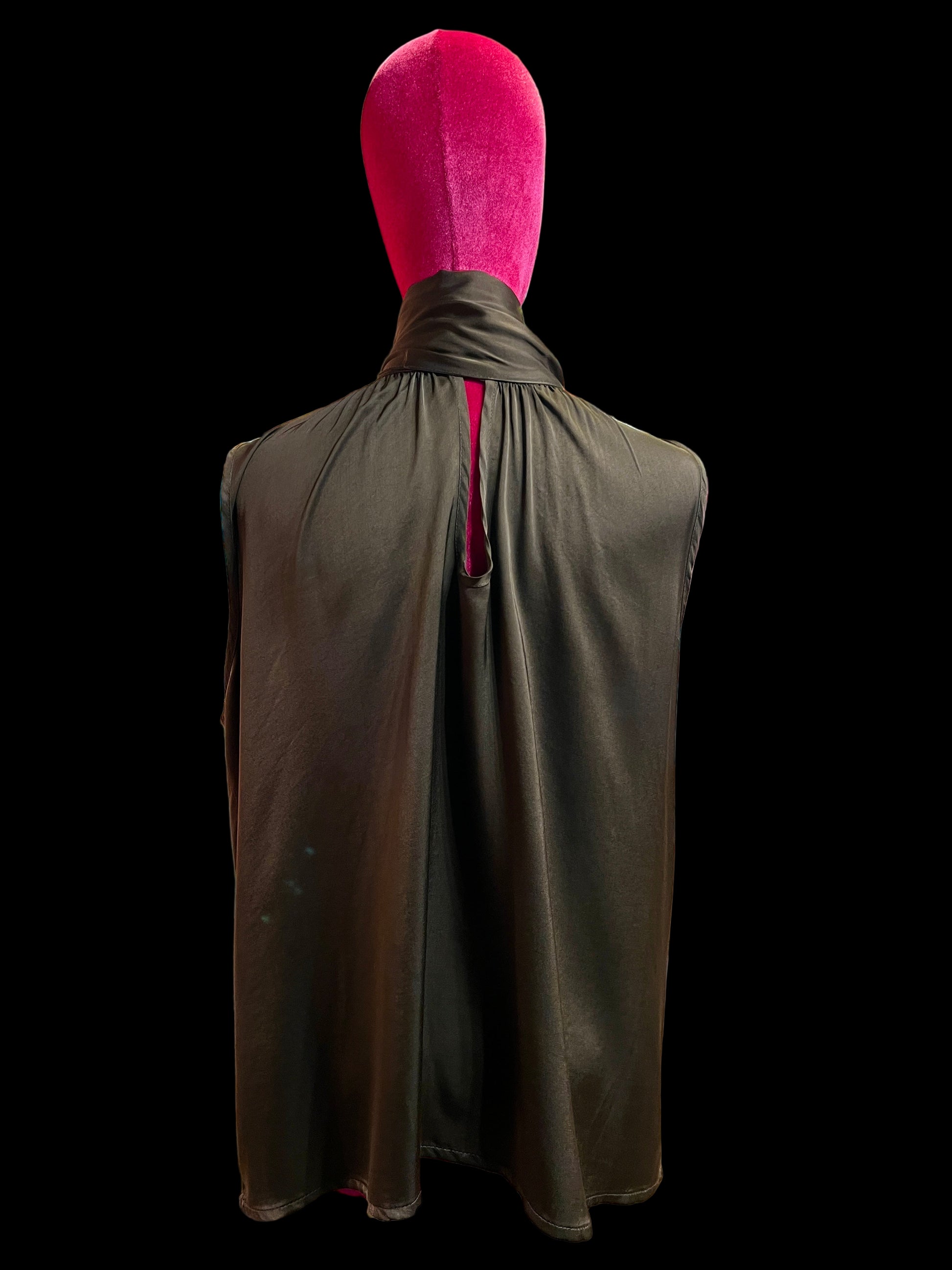 The Room blusa in raso cioccolato senza maniche con foulard collo